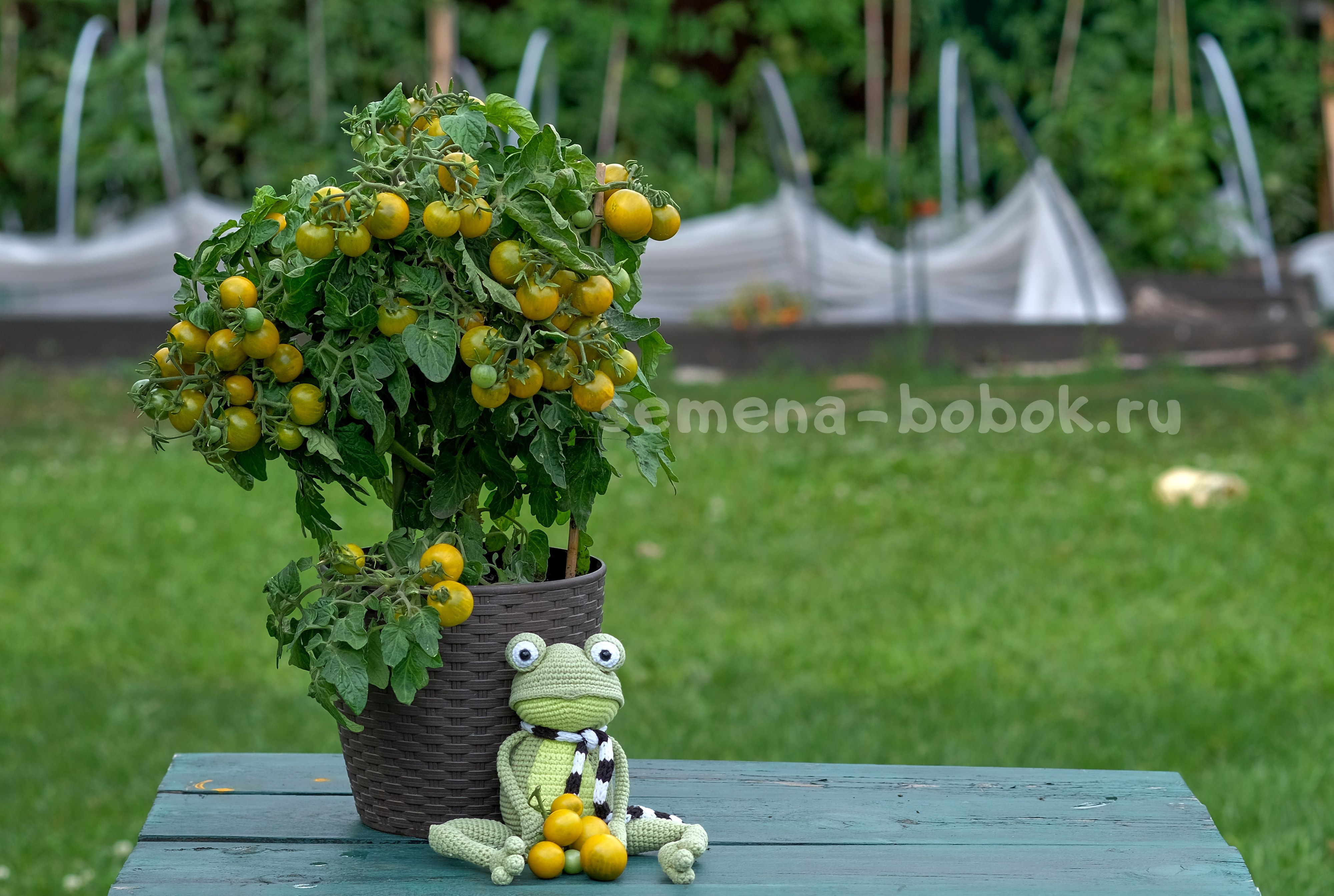 Высота куста около 30-35 см, лист простой, плотный и морщинистый как у всех гномов. Плоды круглые зеленоплодные черри, весом 15-20 г (в грунте будут больше), которые при созревании приобретают цвет желтой сливы. На эту желтую сливу он похож и по консистенции, мне даже оттенок в послевкусии был сливовый, но возможно это я себе внушила. Очень сладкий и вкусный томат! Вот прям рекомендую!Год урожая: 2024