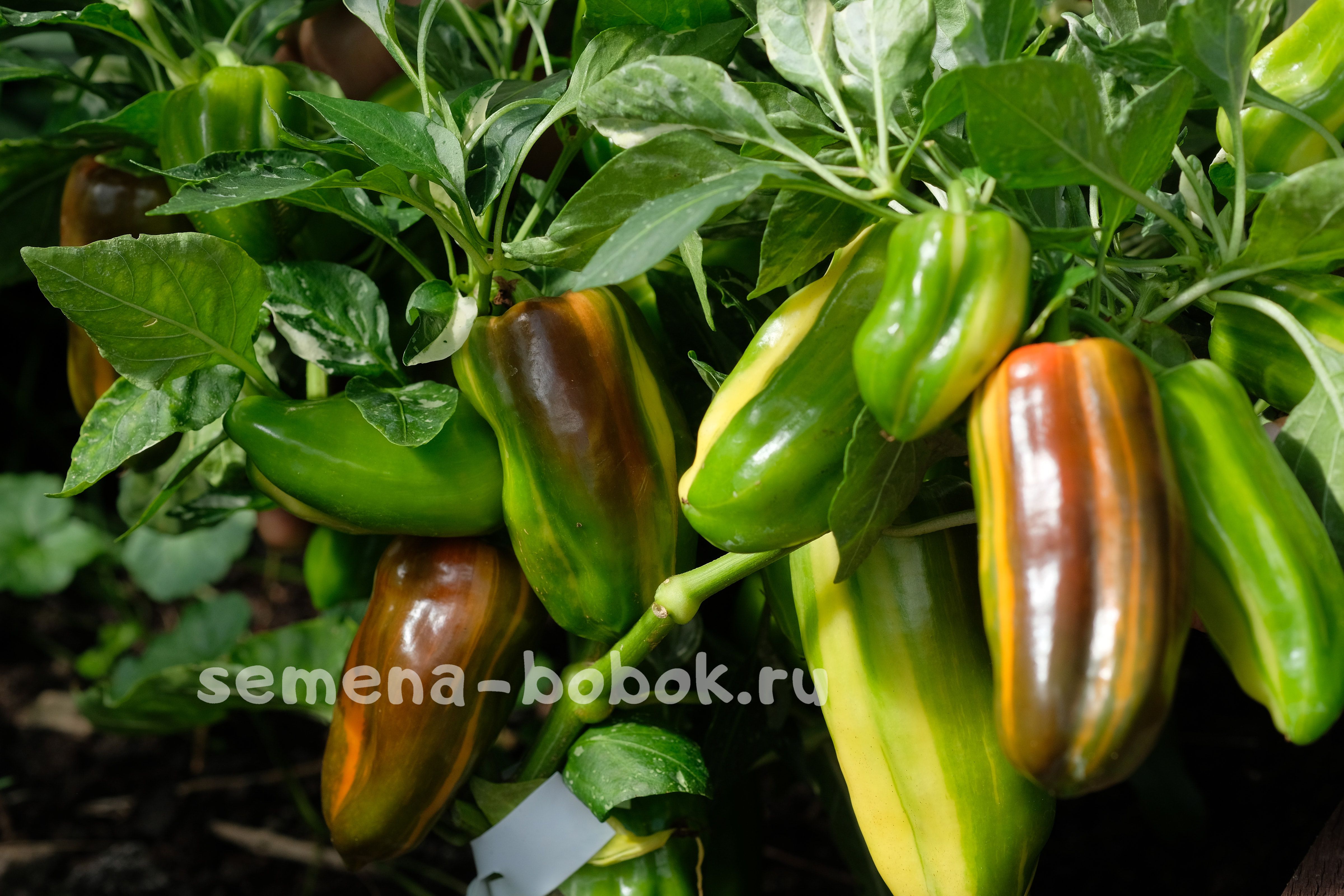 Превосходный сладкий вкус, хрустящая текстура, идеально подходят для свежей еды на любой стадии зрелости. Растение высотой 40-45 см, компактное, средней мощности, для выращивания в открытом и закрытом грунте. Подходит для выращивания в кашпо на окне. Разнообразие вариегатных кустов и листвы и плодов усиливается по мере созревания растений. Это растение перца будет выделяться, радовать и удивлять всех!