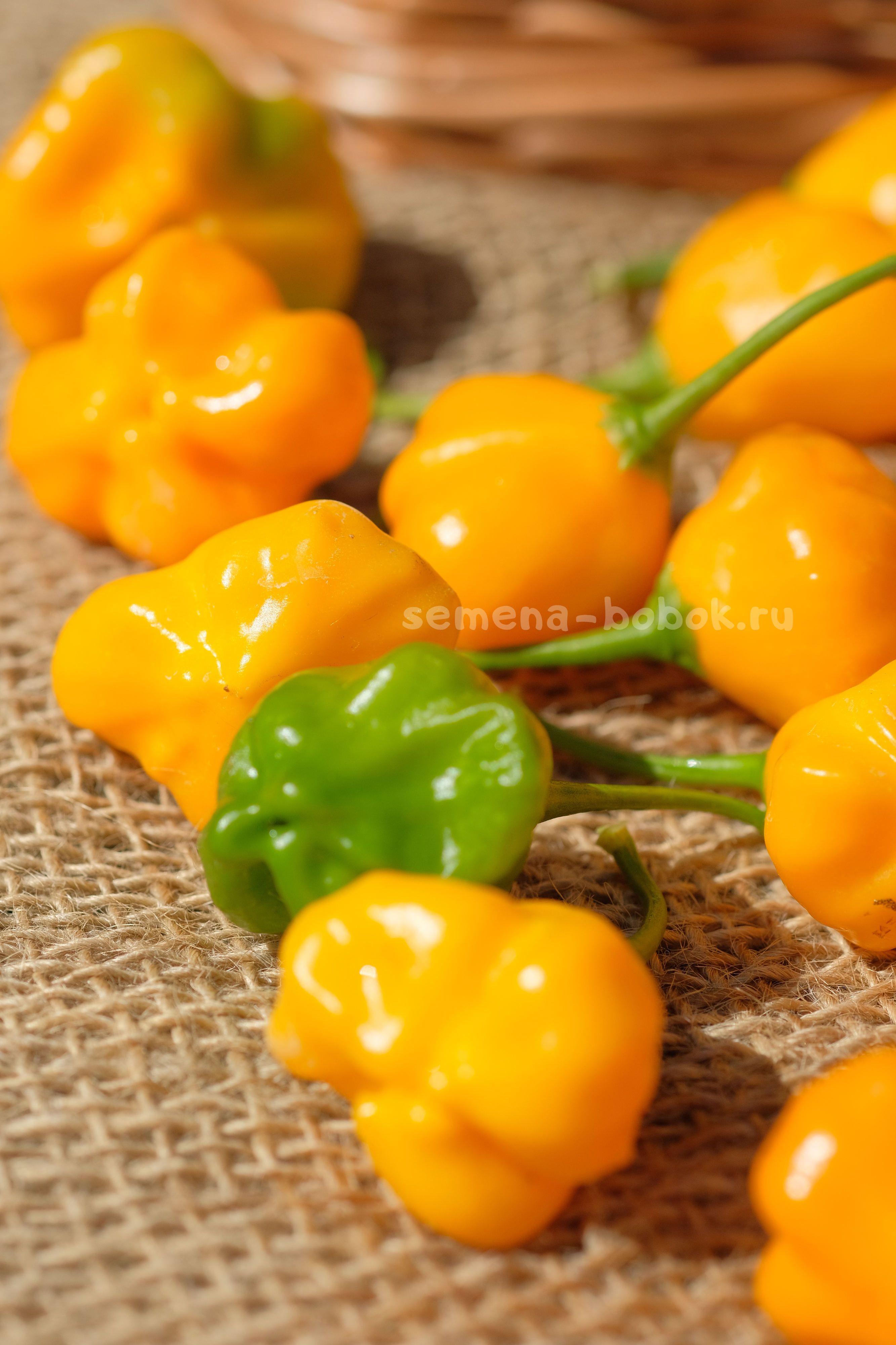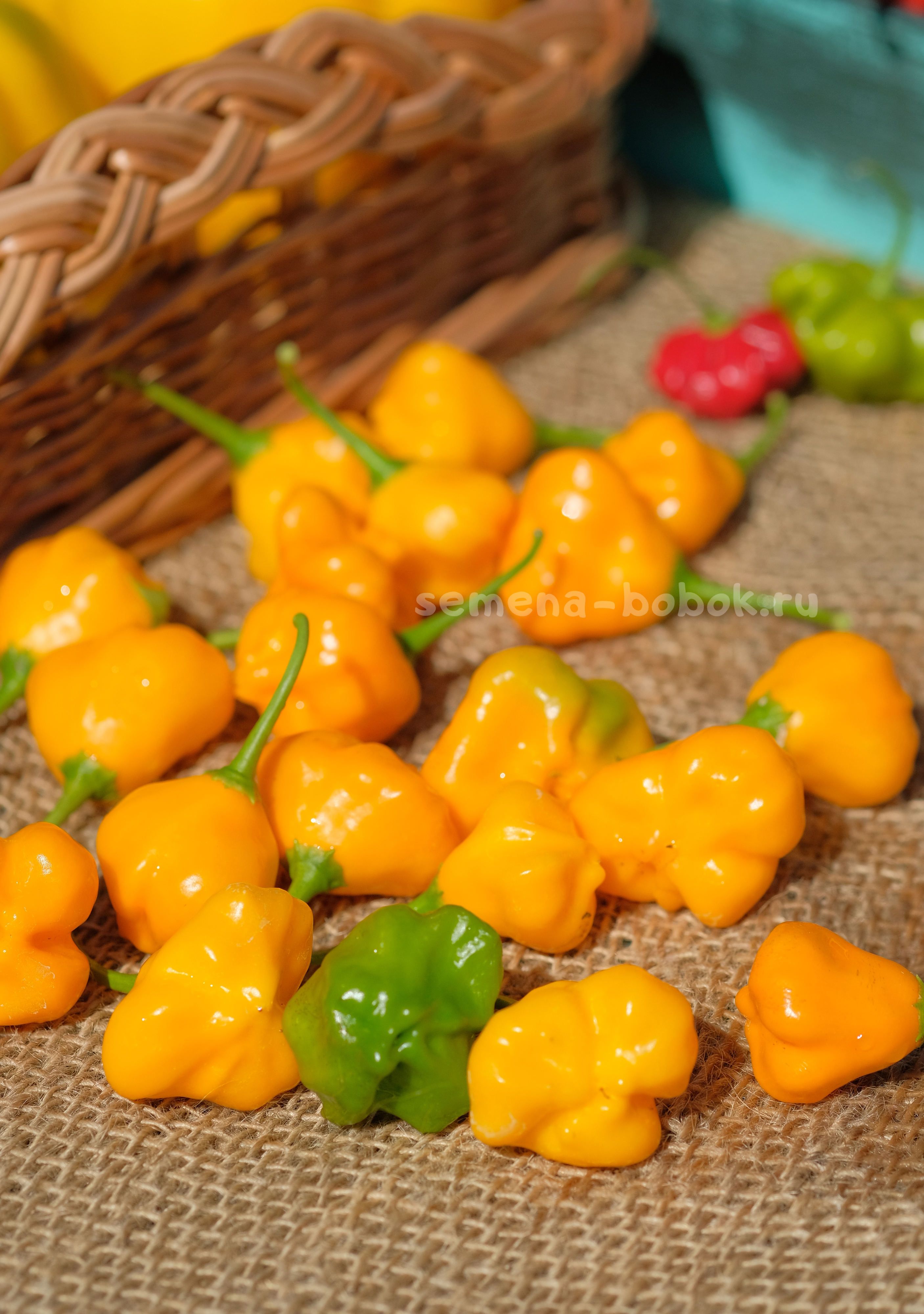 Сорт немецкой селекции. Сочные фруктовые маленькие колокольчики оранжевого цвета в изобилии. Стенка не тонкая, хрустящая, сладкая с фруктовым ароматом. Отлично подойдет для приготовления острых соусов. Острота 5-10 тыс. по шкале Сковилла.