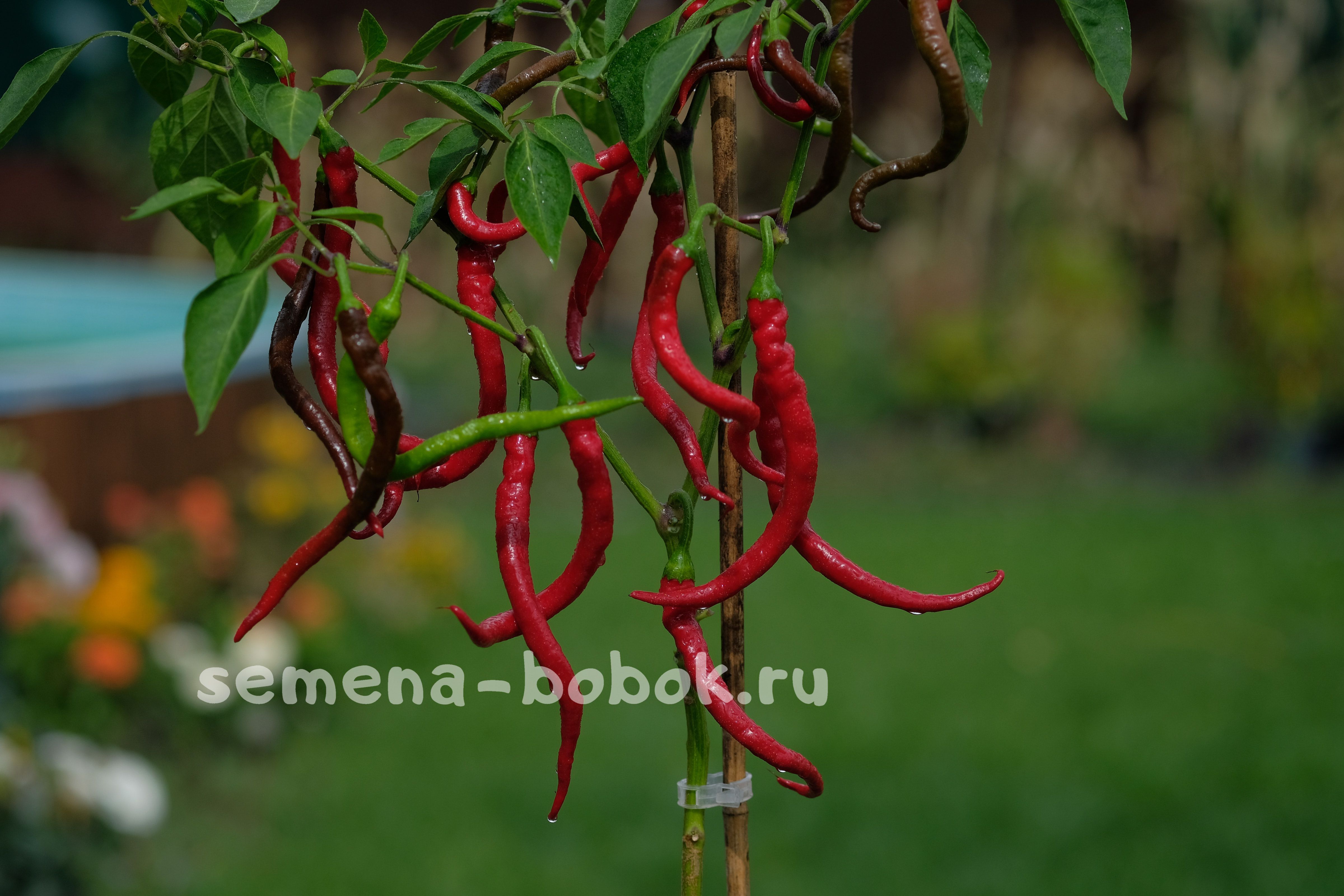 c. Annuum Знаменитый турецкий перец (Biber в переводе с турецкого - перец). Куст не высокий, при выращивании в кашпо 5 литров, его высота не превышает 50 см, в теплице или открытом грунте будет выше. Очень эффектно смотрятся длинные "кудрявые" стручки в момент созревания. Этот перец практически не имеет остроты (до 1000 shu), в Турции употребляется в основном в технической спелости, в зеленом виде. Красный можно использовать на сушку, для украшения интерьера. Аромат классический перечный, вкус свежий, с небольшой кислинкой.