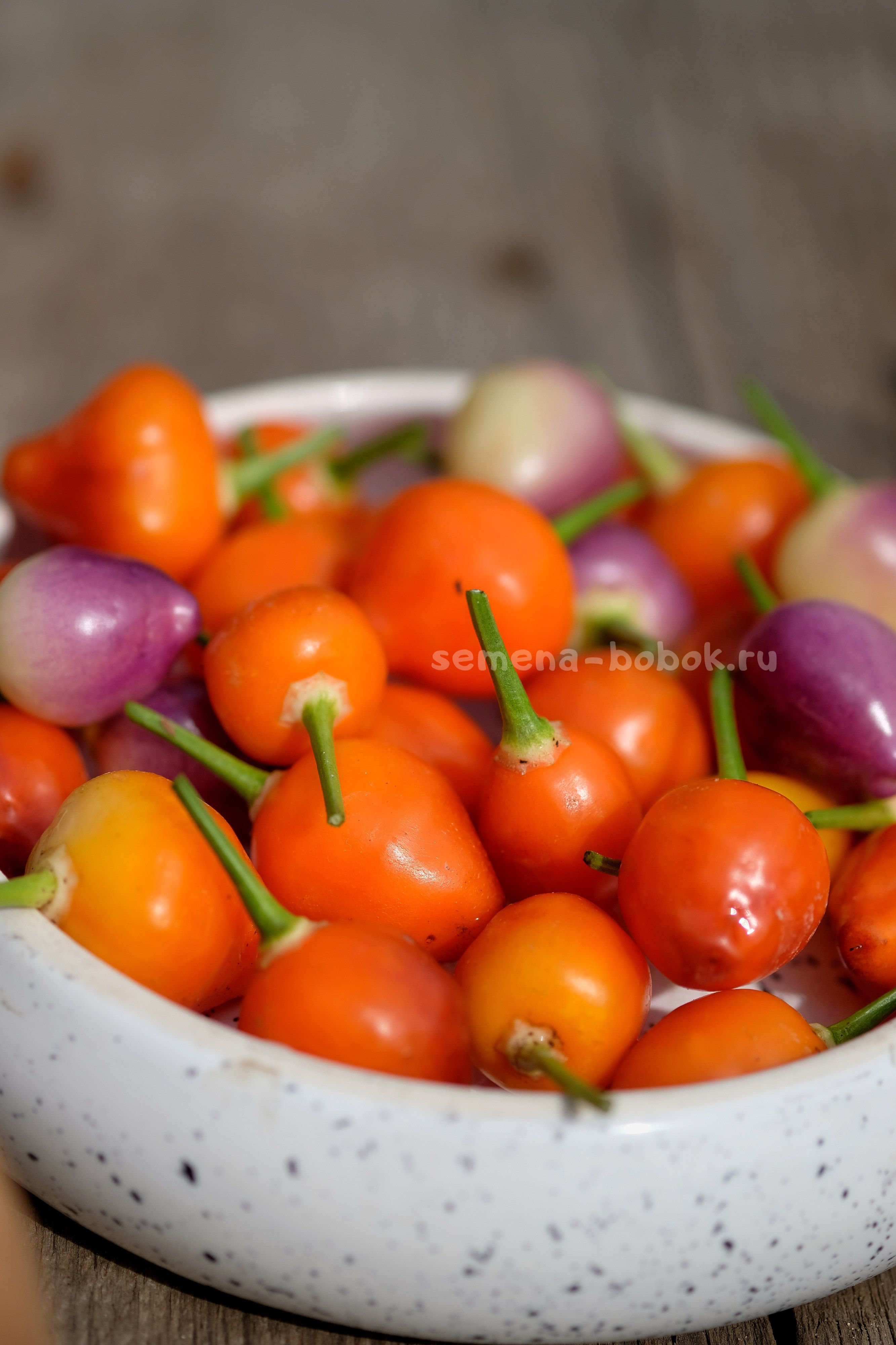 Стручки в форме сердца, размером около 3 см, очень красиво перецветают - от фиолетового к ярко-оранжевому через желтый. сочные, сладкие, с фруктовым ароматом. Острота "гуляет" в зависимости от условий и погоды. Первые стручки были мало-острыми, к концу сезона острота была порядка 10 тыс.