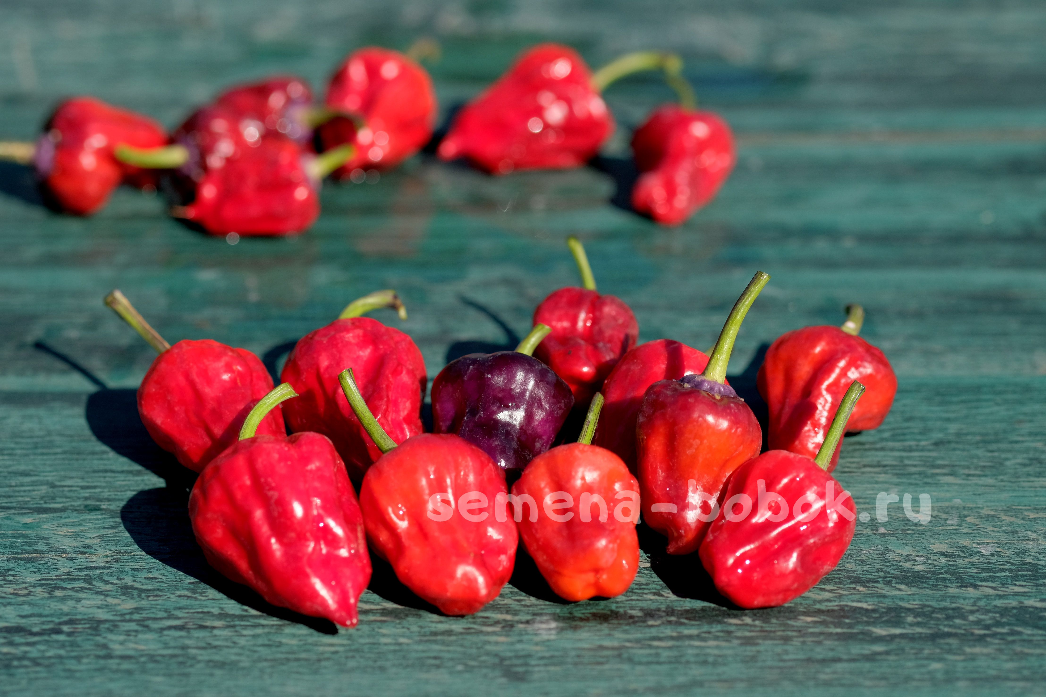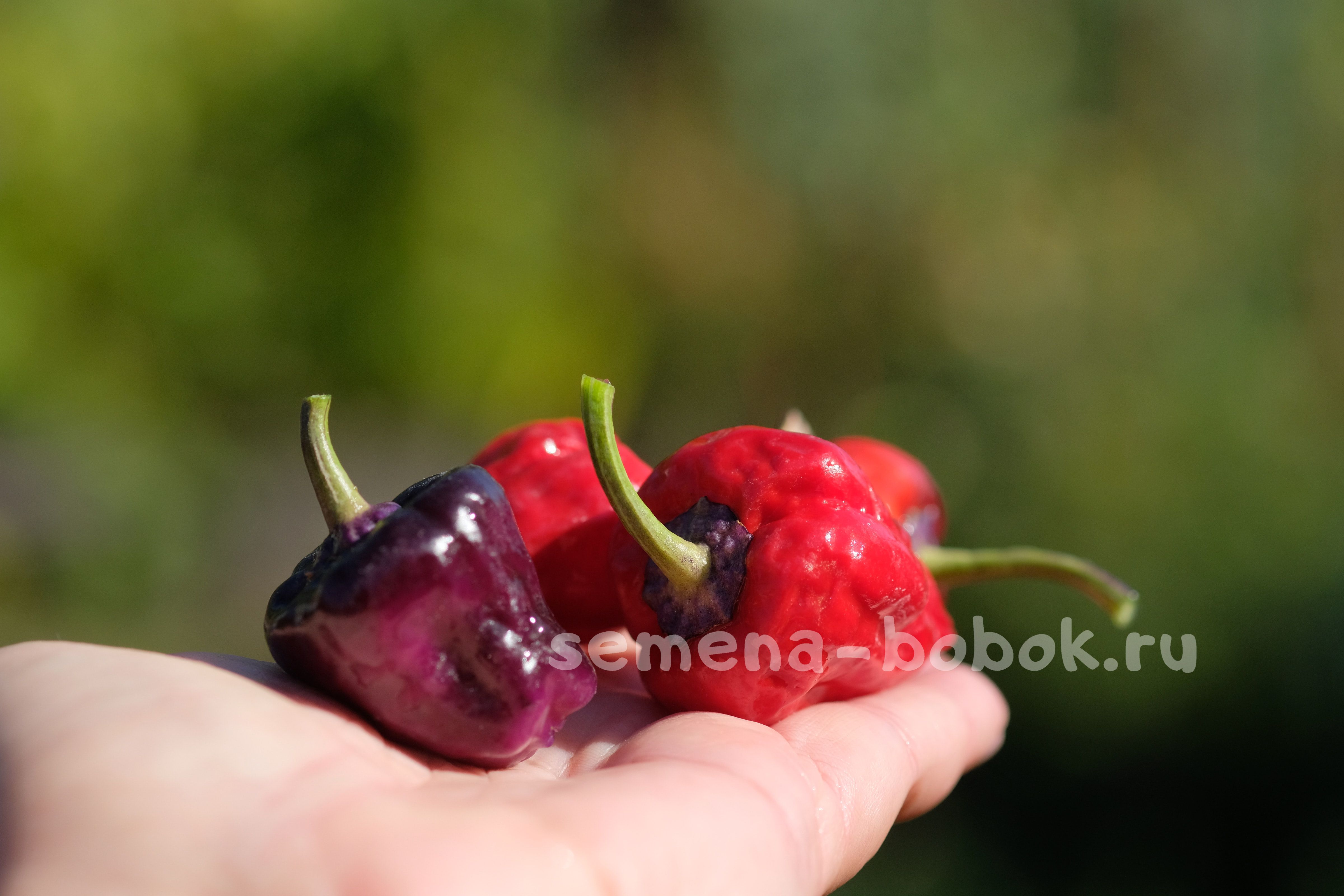 c. Annuum. Довольно необычная форма среди аннумов у этого перца, веретенообразная. Отсюда и название UFO - НЛО. Куст в высоту менее метра при выращивании в кашпо 3 литра. В стороны не особо разрастается, даже после развилки ветки растут строго вверх, этакий стойкий солдатик. Листва с фиолетовым оттенком, плоды сначала также фиолетовые, затем перецветают в кроваво-красный цвет через желтые и оранжевые цвета. Острота средняя - 20-30 тыс. по шкале Сковилла. Вкус и аромат зеленого яблока.