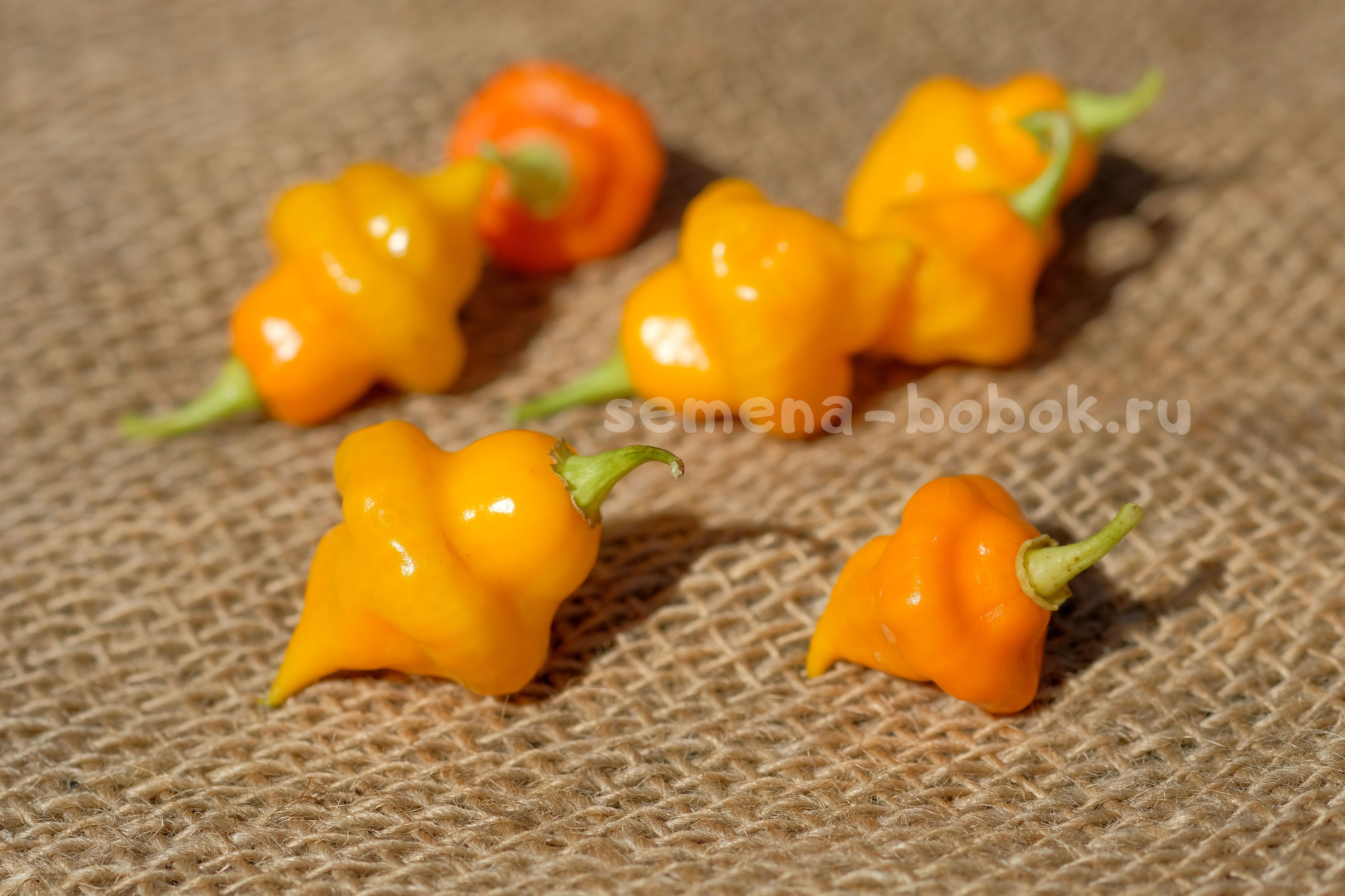 Стручки ярко-оранжевого цвета в форме тюрбана с острым хвостиком. Куст крепкий, ветвящийся, высотой ококло 40 см. Рос в горшке 7 литров.