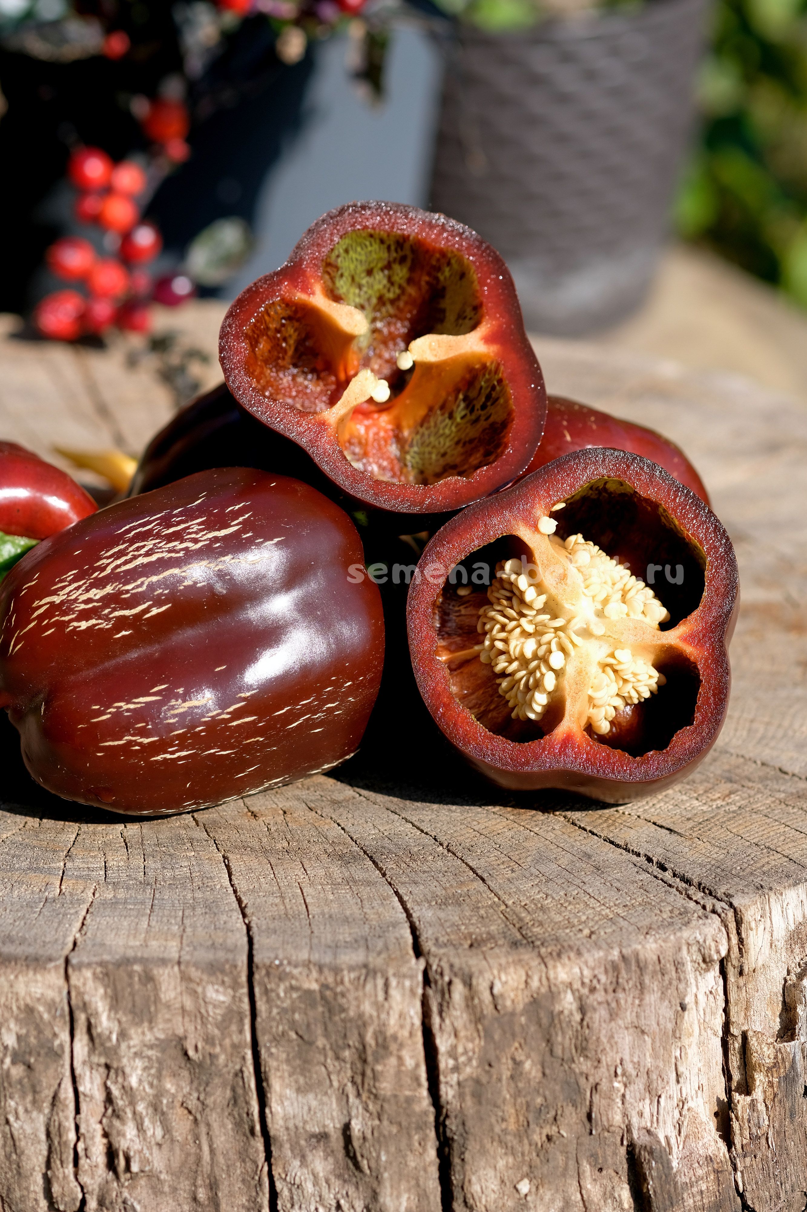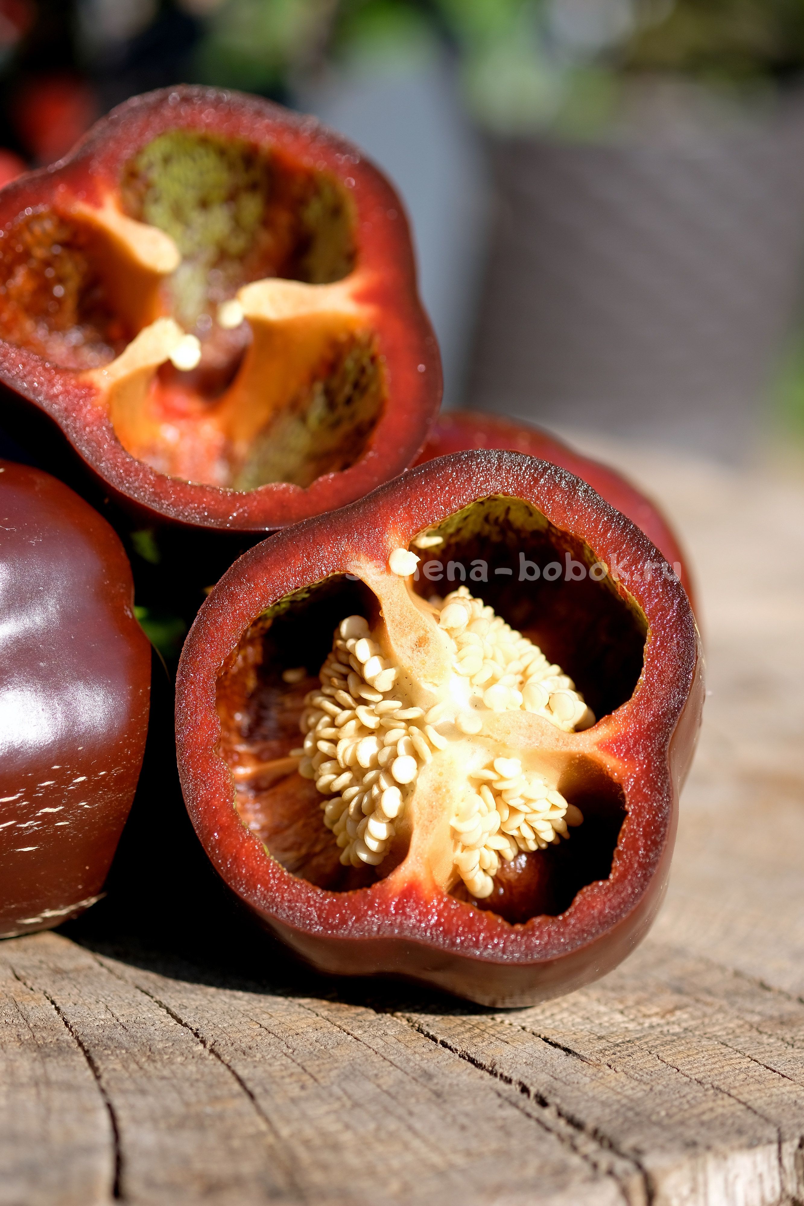 Кубовидный сорт перца шоколадной окраски. Стенка толстая, мясистая, 8-9 мм. Аромат классический, перечный, вкус сладкий. Куст в открытом грунте был 50-60 см, в теплице может быть повыше.