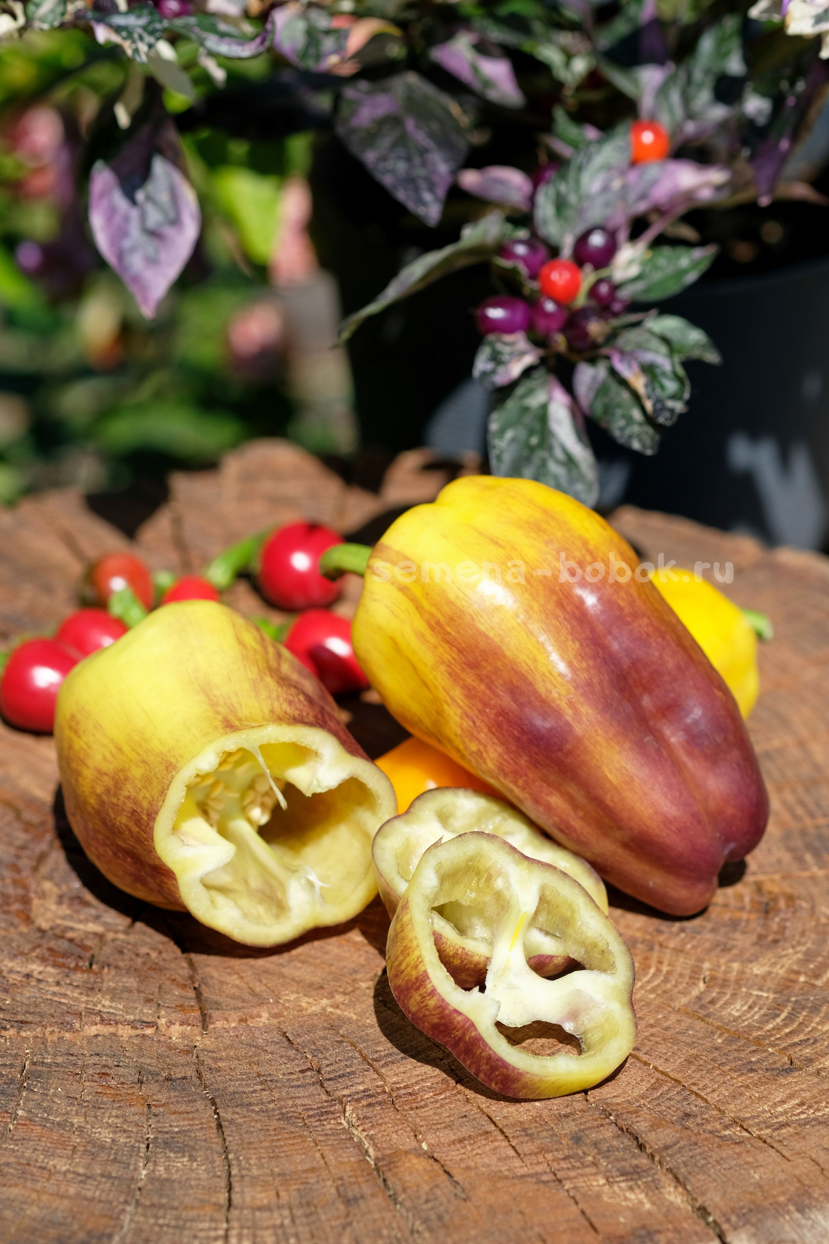 Красивый и необычный сорт сладкого перца. Плоды крупные, длинные-кубовидные, в биологической спелости ближе к рыжему с антоциановыми разводами, как будто чернилами обрызгали. Отсюда и название - клякса. Вкус сладкий, с фруктовыми оттенками. Стенка 7-8 мм. Куст в открытом грунте около 50 см.