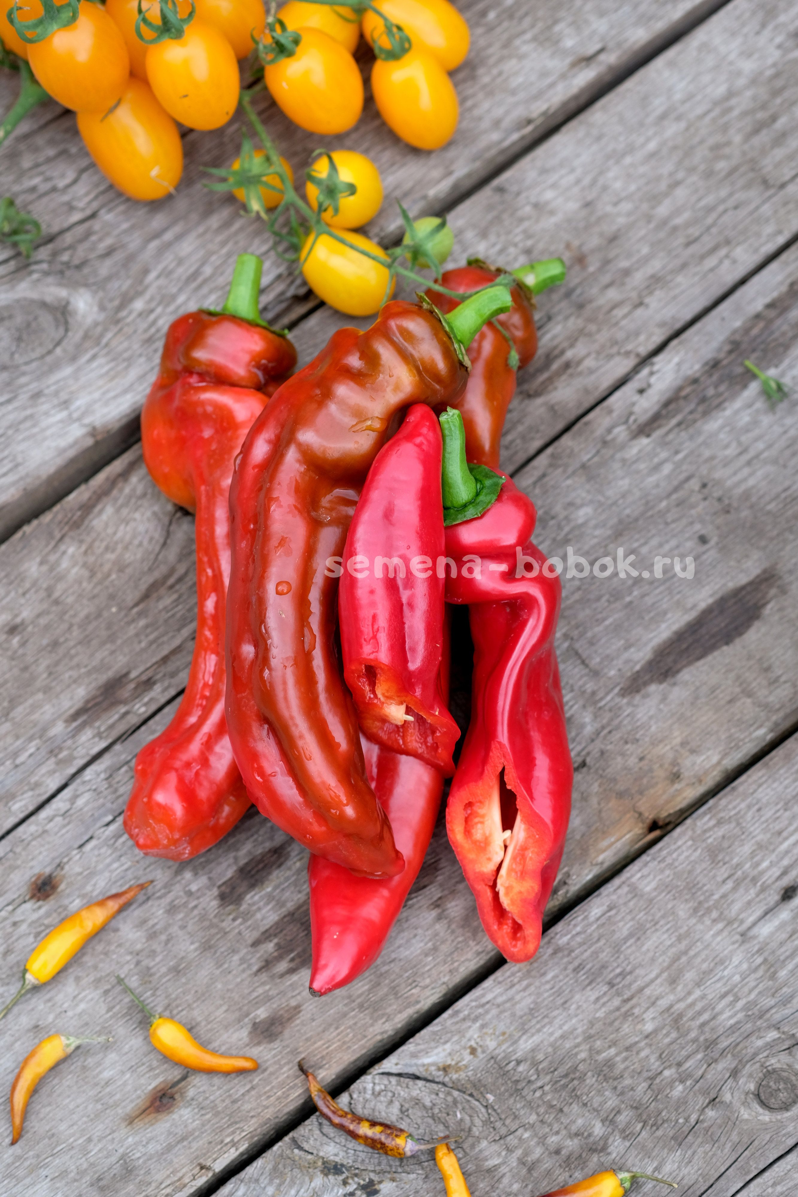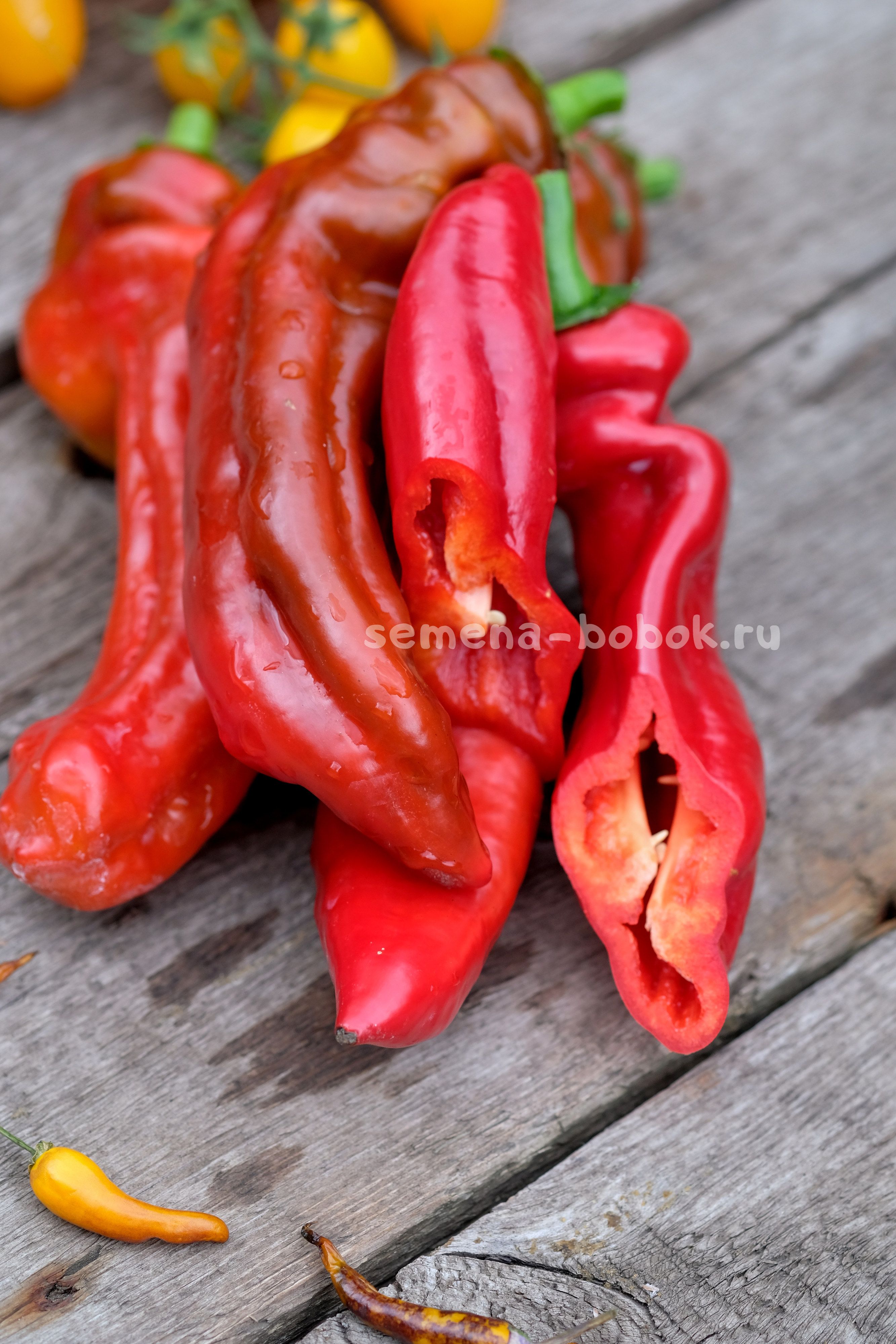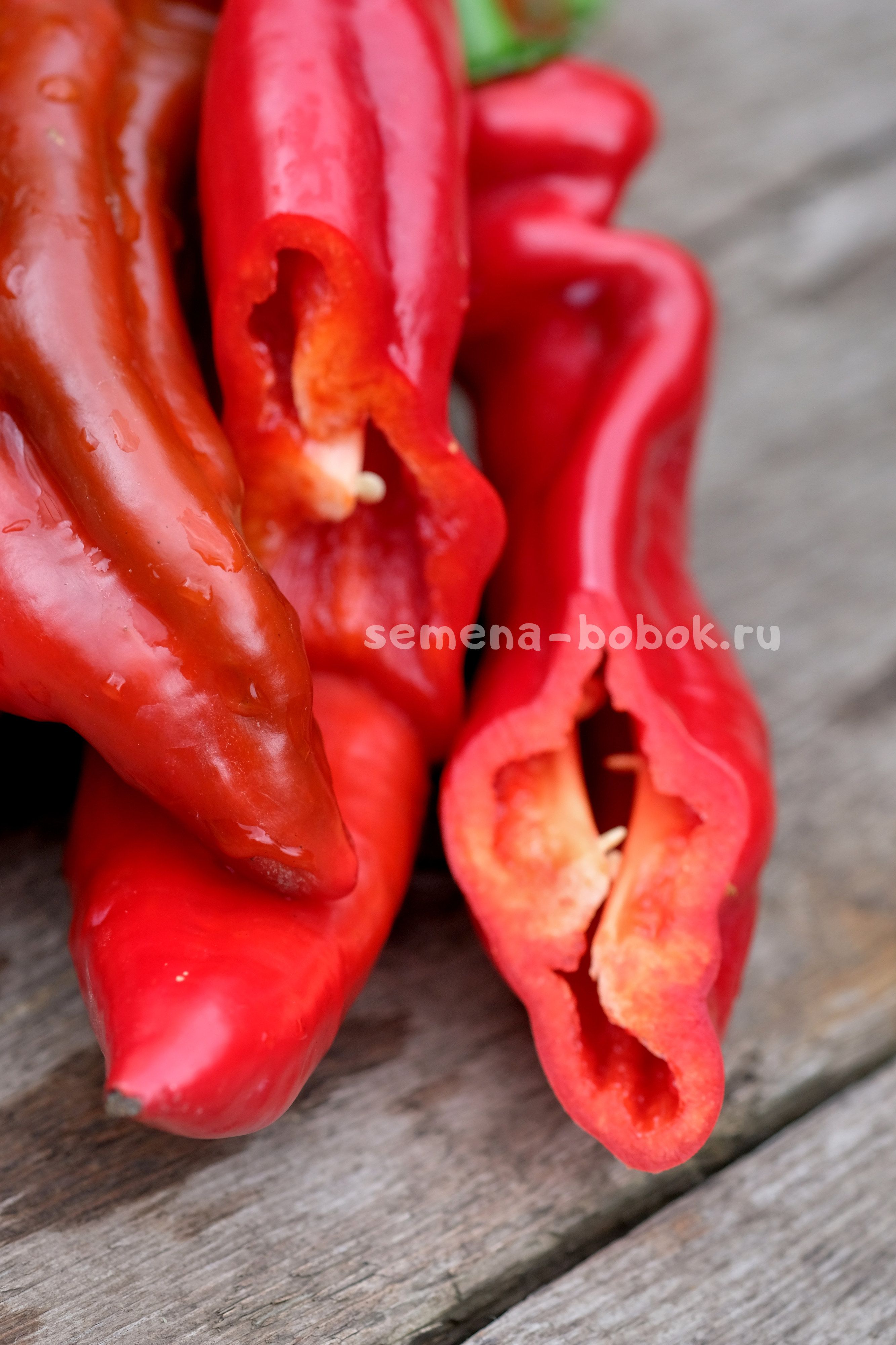 Перцы длинные, конусовидные, сортотипа капия, красного цвета. Очень вкусный, очень сладкий, хрустящий, стенка 5 мм. Кусты в открытом грунте были 90 см. Плоды длинные, красивые, до 30 см длинной. Первые плоды у меня упирались в грунт). Среднеспелый.