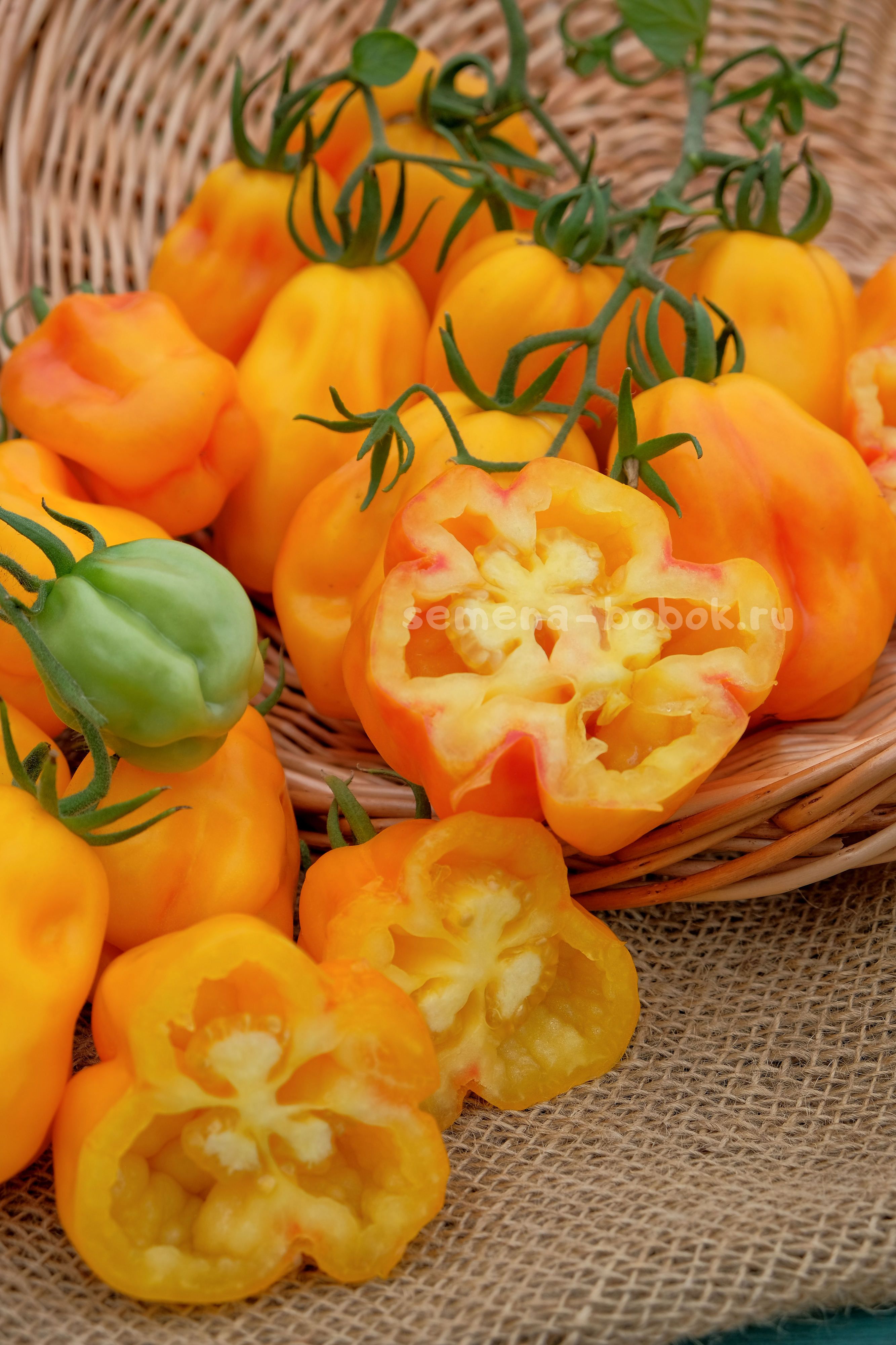 На разрезе не сразу распознаешь томат, очень похож на крупный мясистый сладкий перец).