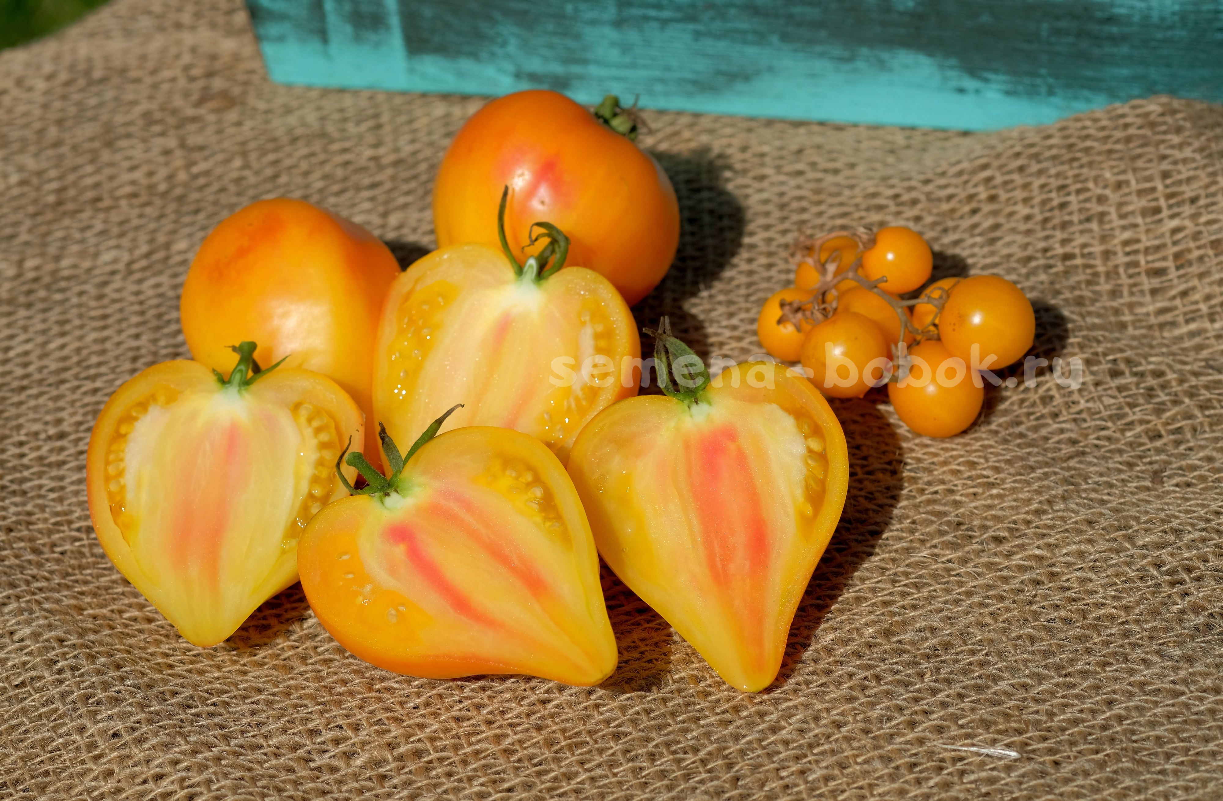 Вкусный биколор. В первой кисти был один огромный помидор в форме серца весом больше 600 грамм, выше навязал сердец поменьше, в среднем 150-200 г.