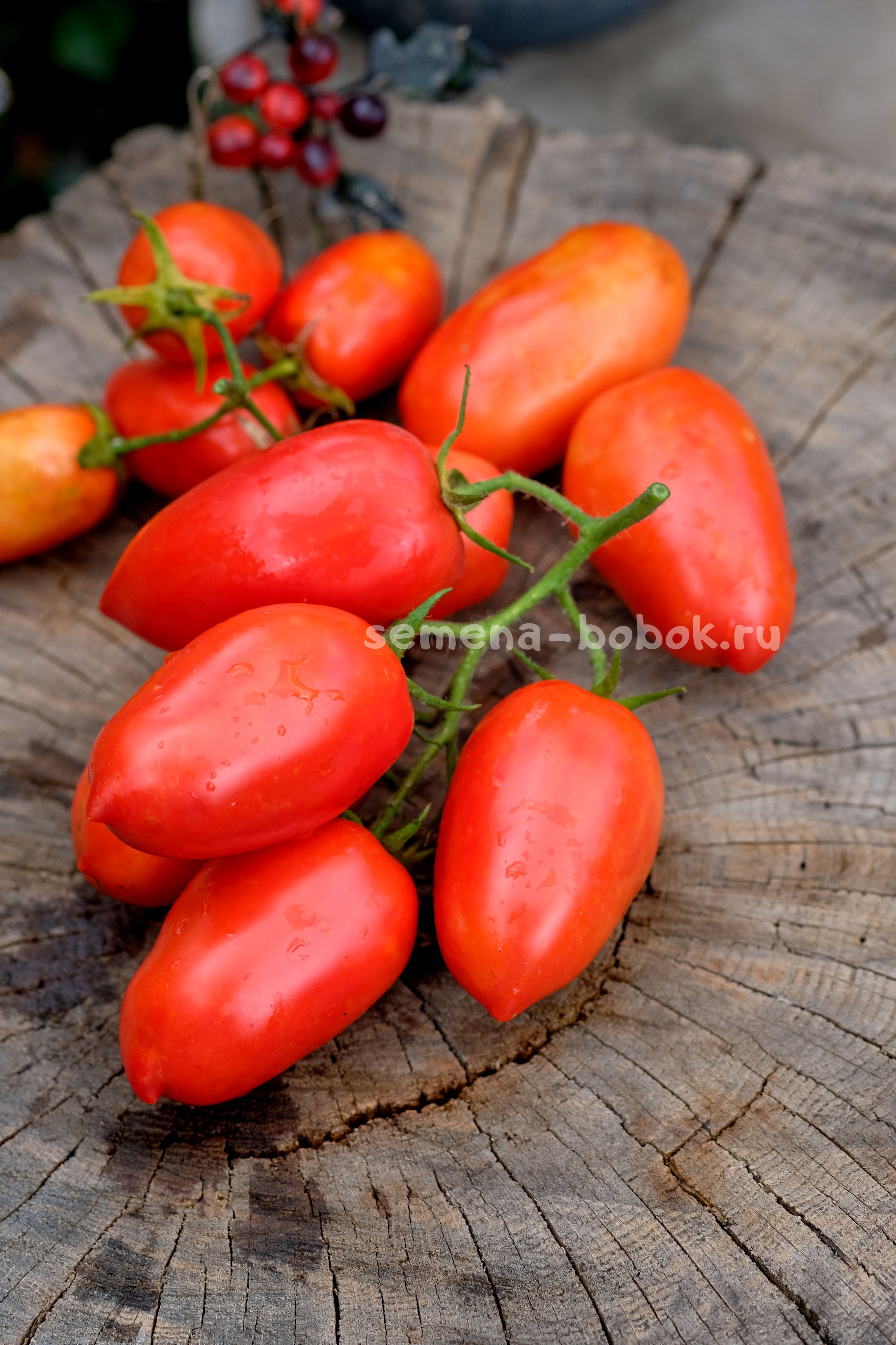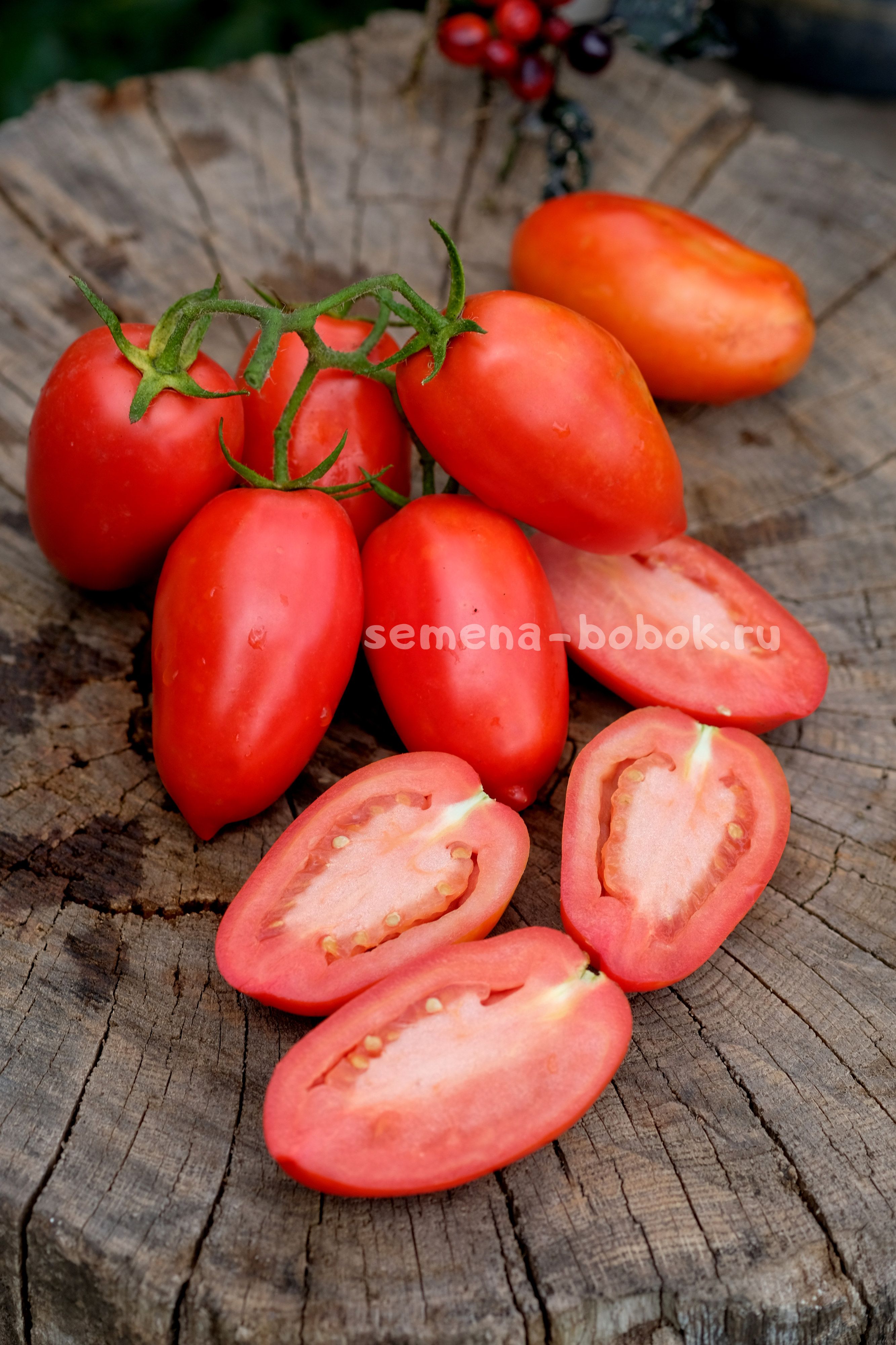 Плоды - крпные красные сливки, чуть заостренные снизу, качественные, плотные, упругие, не трескаются и могут полежать после съема. Кожица в банках не лопается, хоть и тонкая. Вкус классический, томатный, сладкий с кислинкой. Очень хороши для засолки.
