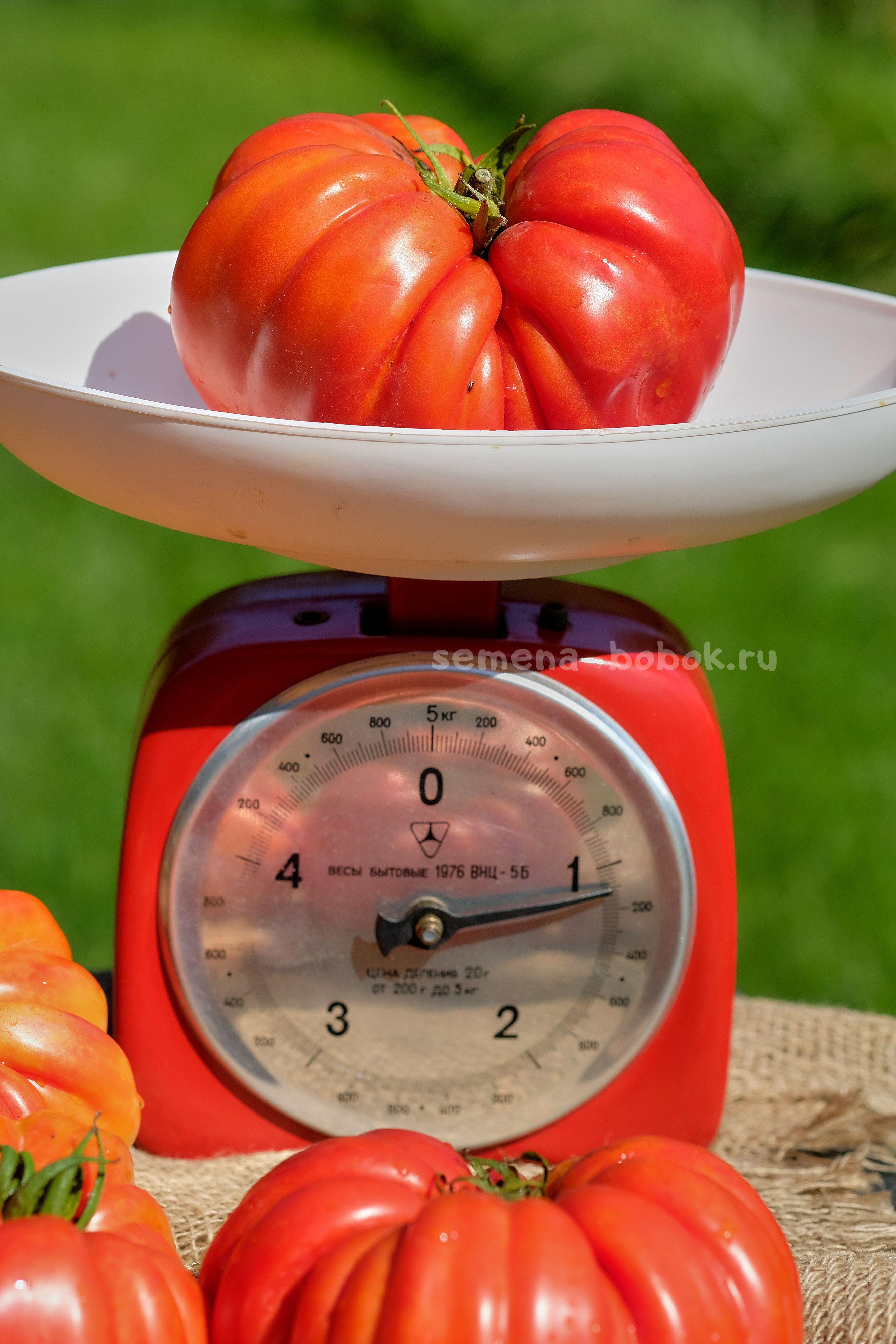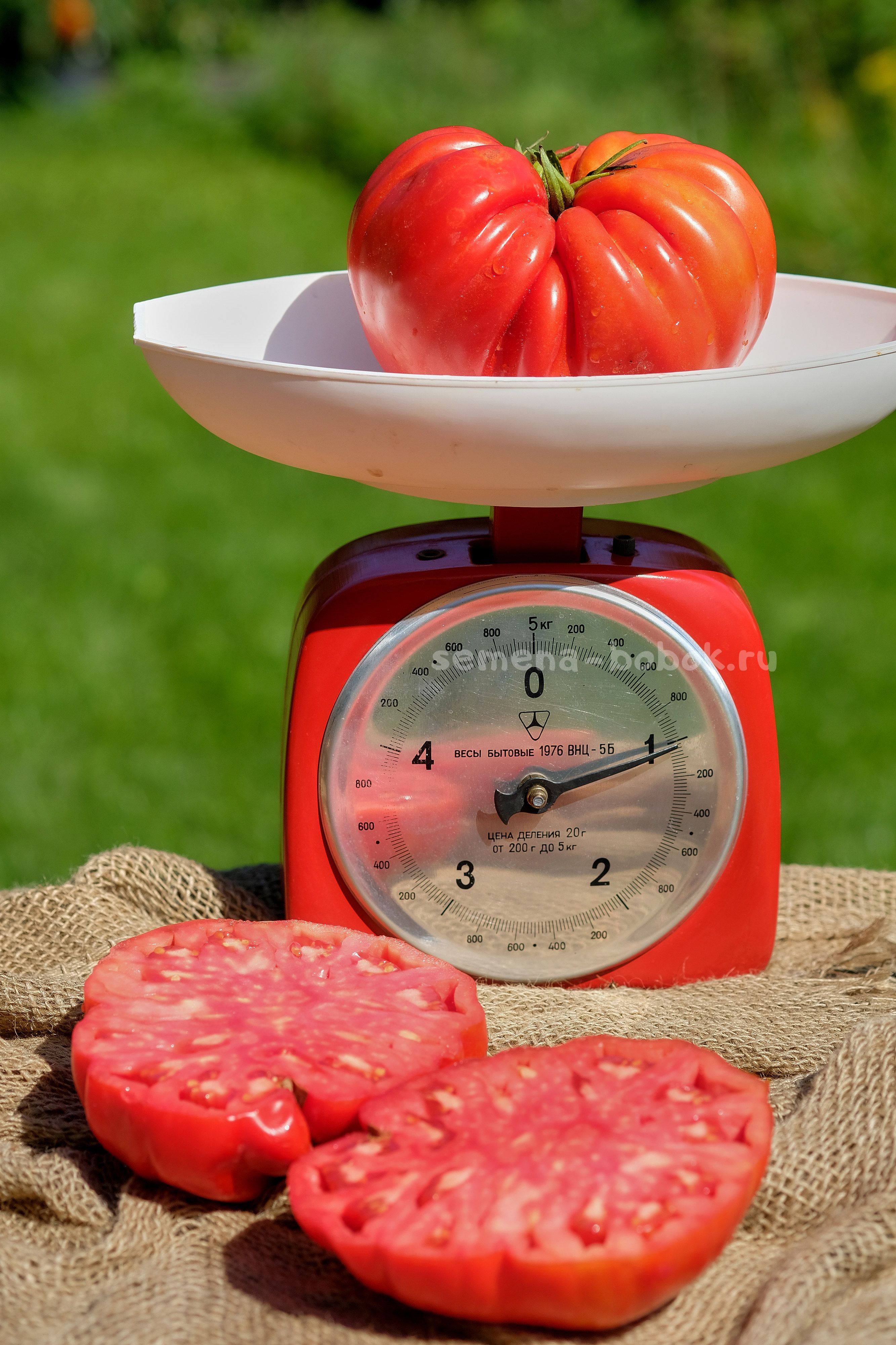 Во истину гигант! Я никогда не формирую кисти, так как нет цели вырастить гигантов, но эти томаты получились самые крупноплодные. В первой кисти завязалось 5 плодов, в рост тронулись четыре. В итоге, кисть получилась на 3,5 кг, из которых один более 1 кг, второй 900 г и два по 800 г. При этом, кисть я не подвязывала, всю эту махину она держала сама. Если бы я оставила в кисти один помидор,он надулся бы под 2 кг, наверное) И это в открытом грунте. Сорт для рекордов.