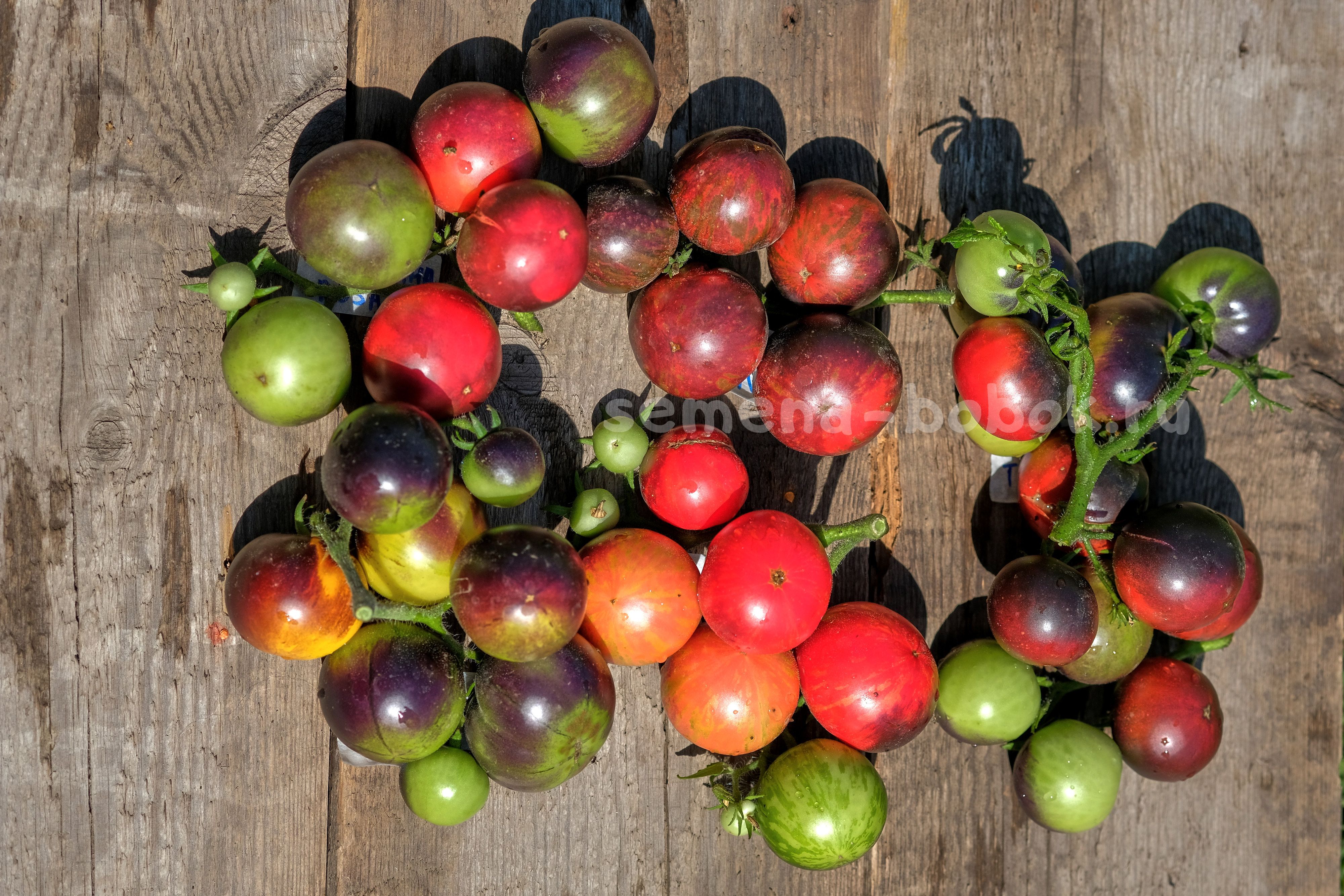 Гондвана Молния: на мой субъективный взгляд - самые красивые внешне. Расцветка у плодов "богатая", яркая. Плоды бордовые, с фиолетовым напылением и оранжевыми вкраплениями. На разрезе алые, семена в желтом геле. Мне они показались самыми сладкими из всей серии, хоть и легкая кислинка в послевкусии присутствует (пока не попробовала Гондвана Лава). Для свежего потребления - в салаты, в нарезку, на бутерброды.