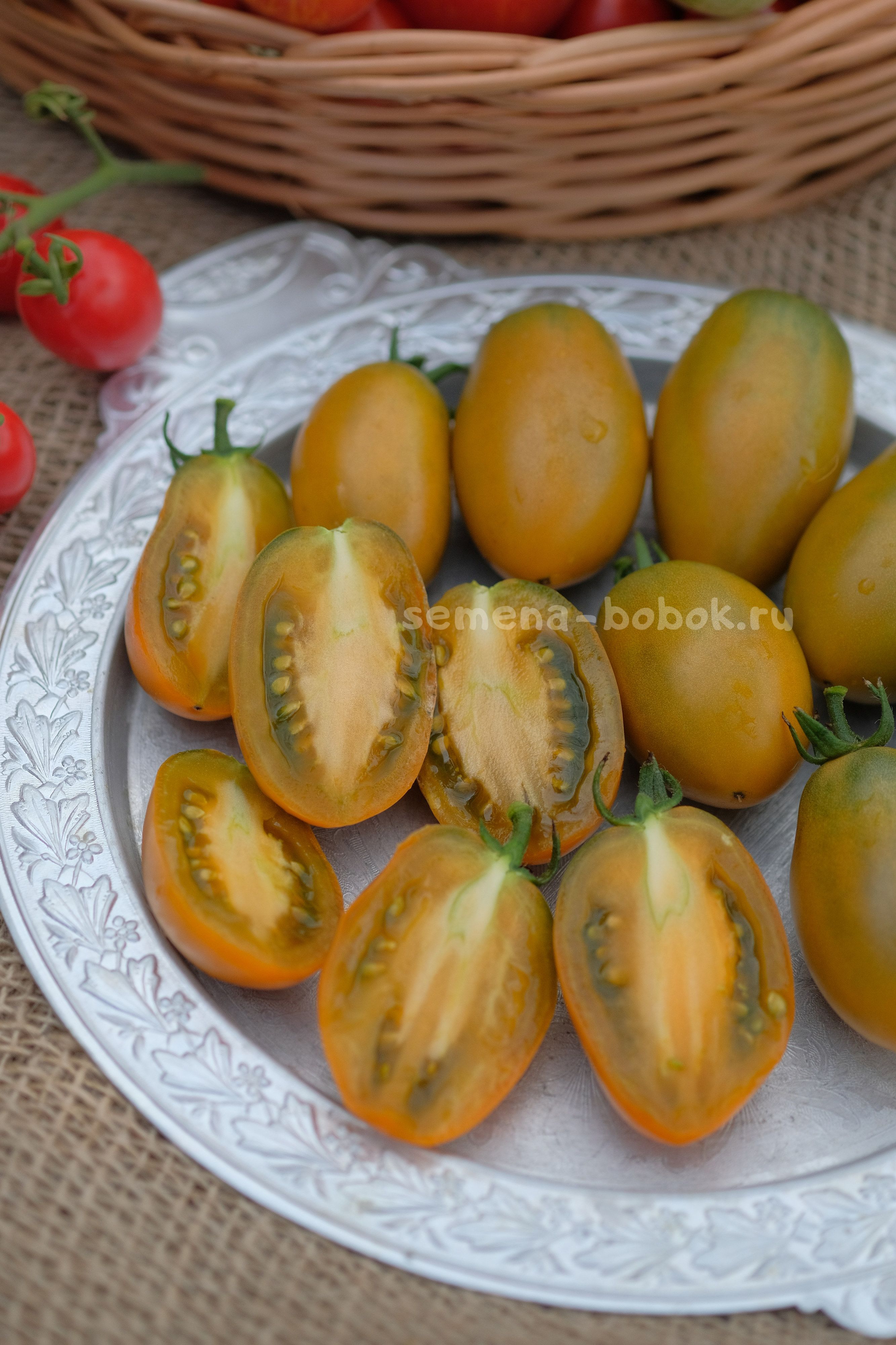 Внутри все та же охровая мякоть с семенами в зеленом геле. Мякоть фруктовой консистенции маслянистая, нежная. Вкус сладкий, с фруктовыми нотками. Очень вкусный и нежный томат.