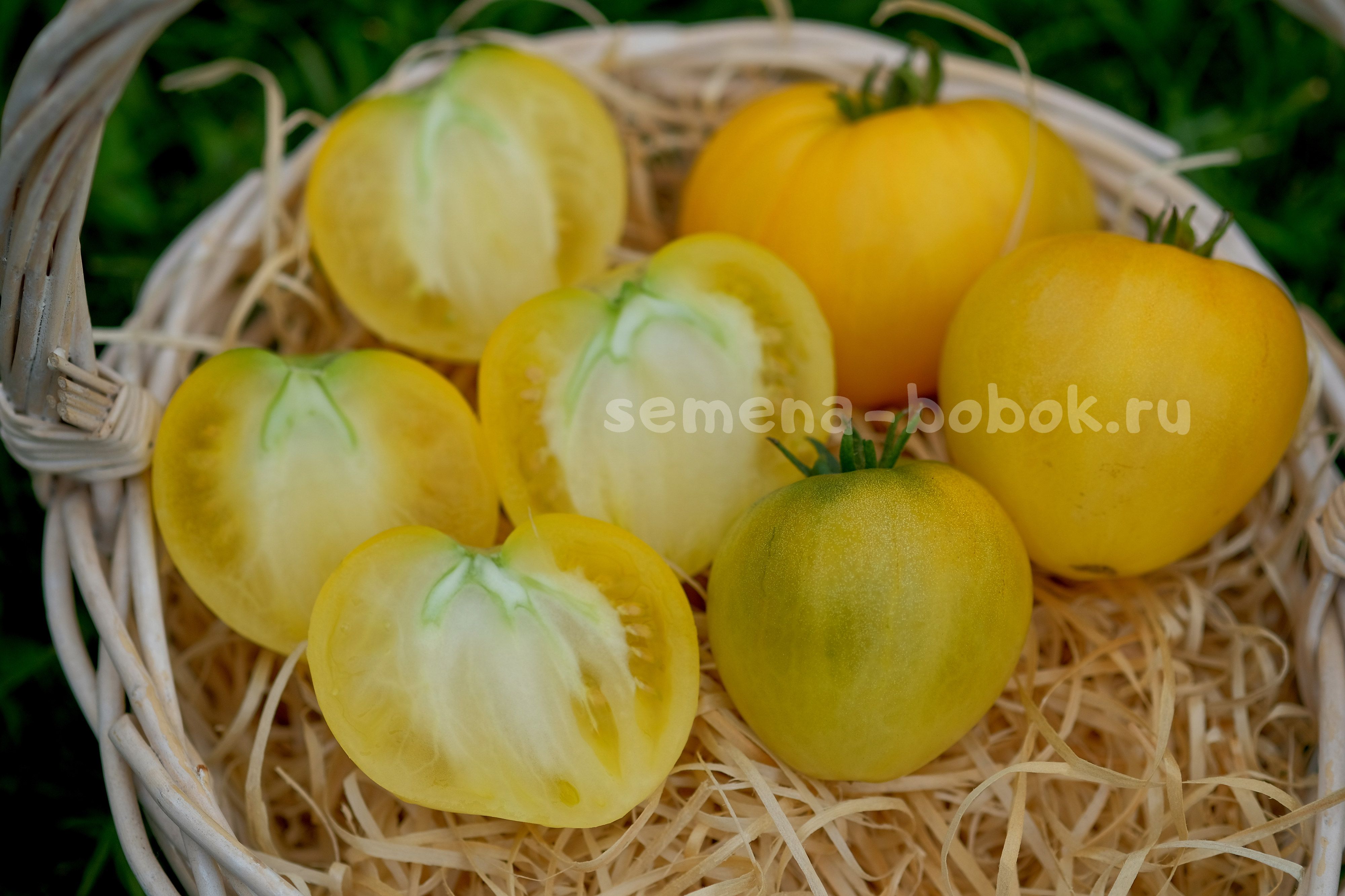 Куст высотой около 90 см, лист регулярный. Очень урожайный. Плоды - лимонно-желтые сердца весом 80-130 г.