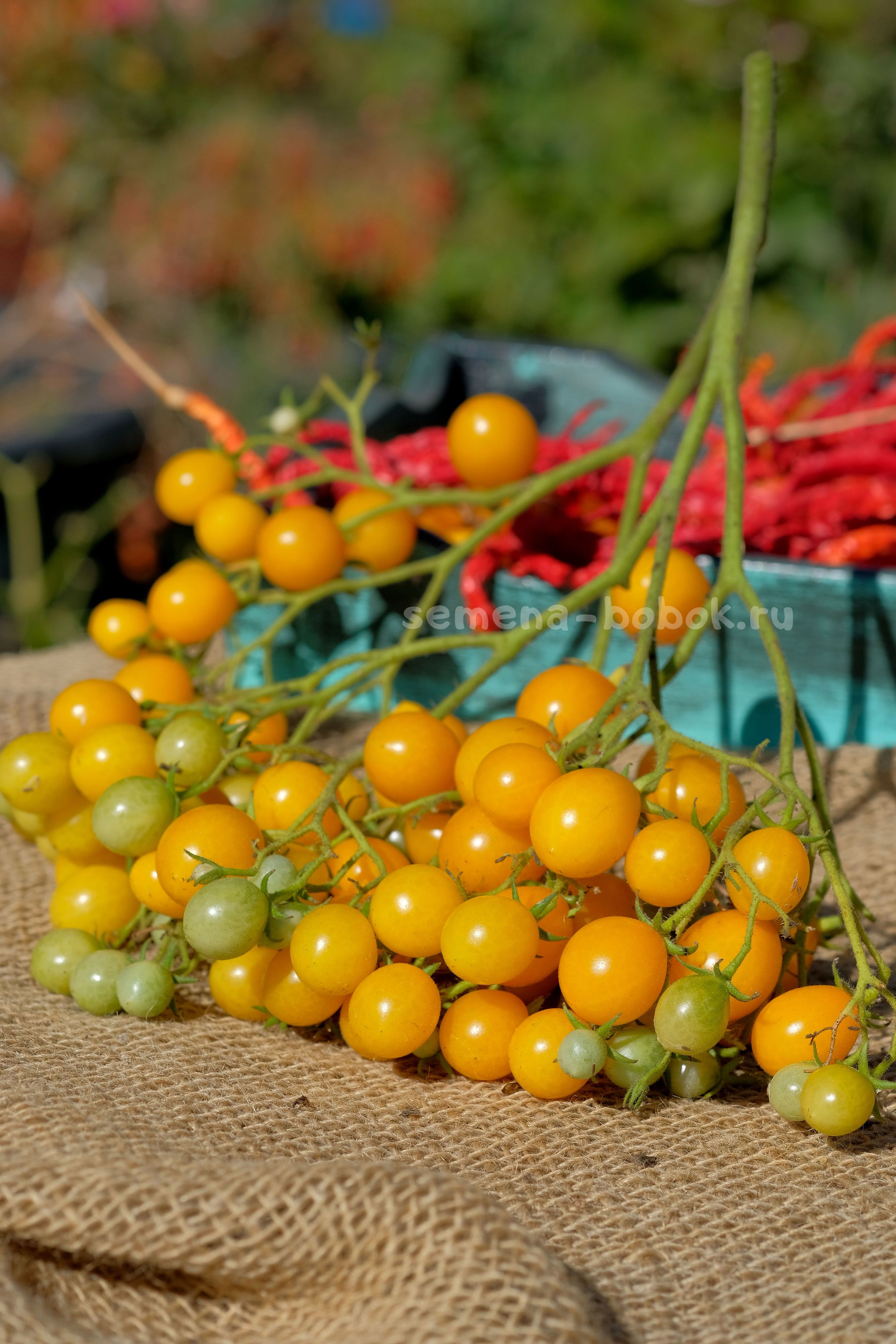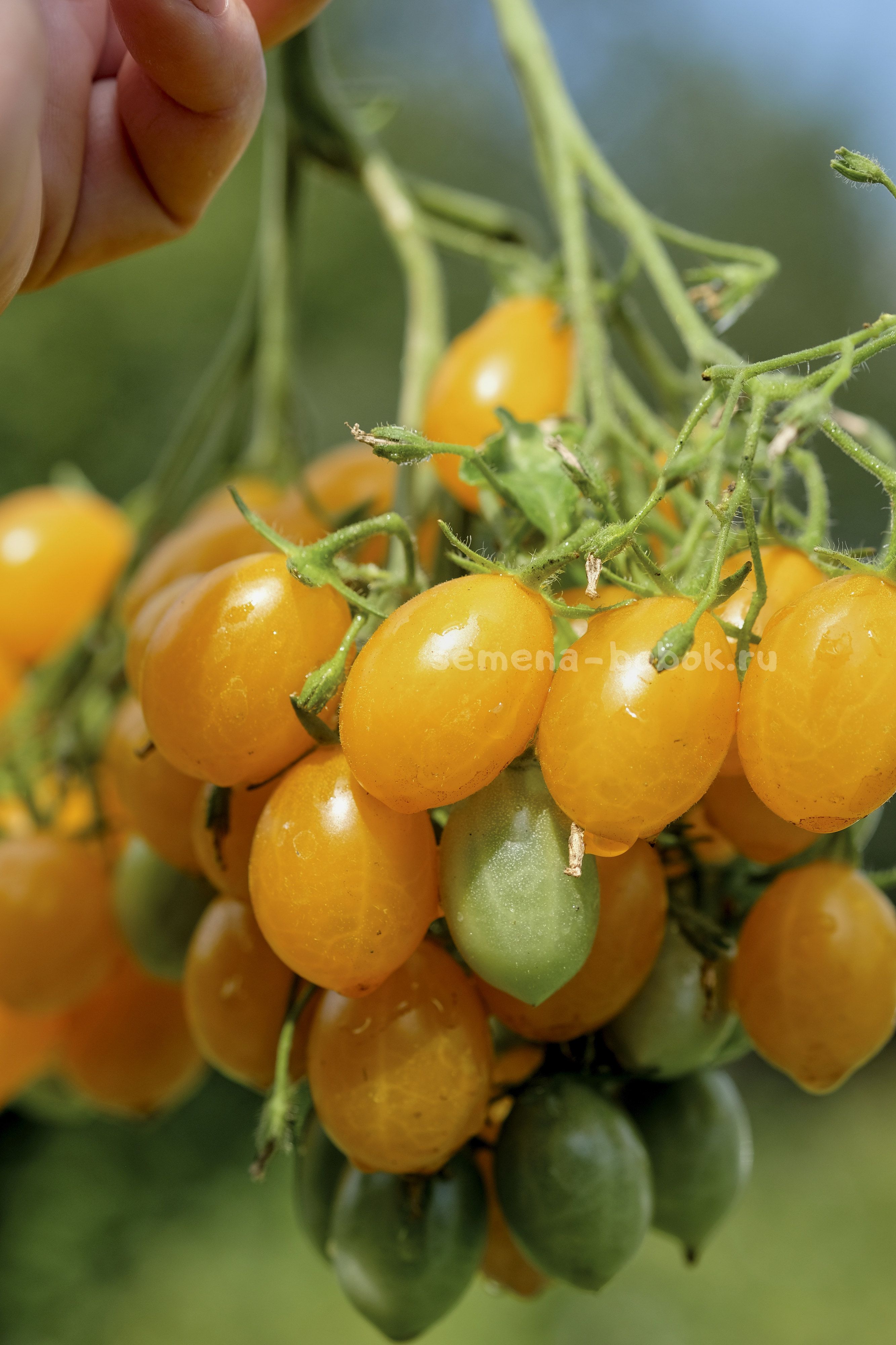 Мультикисти желтых черри! В кисти завязывается около 100 плодов. Рекомендую вести в один ствол и оставлять 3-4 кисти, чтобы они успели вызреть. Вовремя снимать спелые плоды, чтобы в этой же кисти завязывались и созревали новые. Плоды весом по 15-20 г, очень сладкие, практически без кислинки. Кисти держатся хорошо, дополнительные подвязки мне не потребовались.