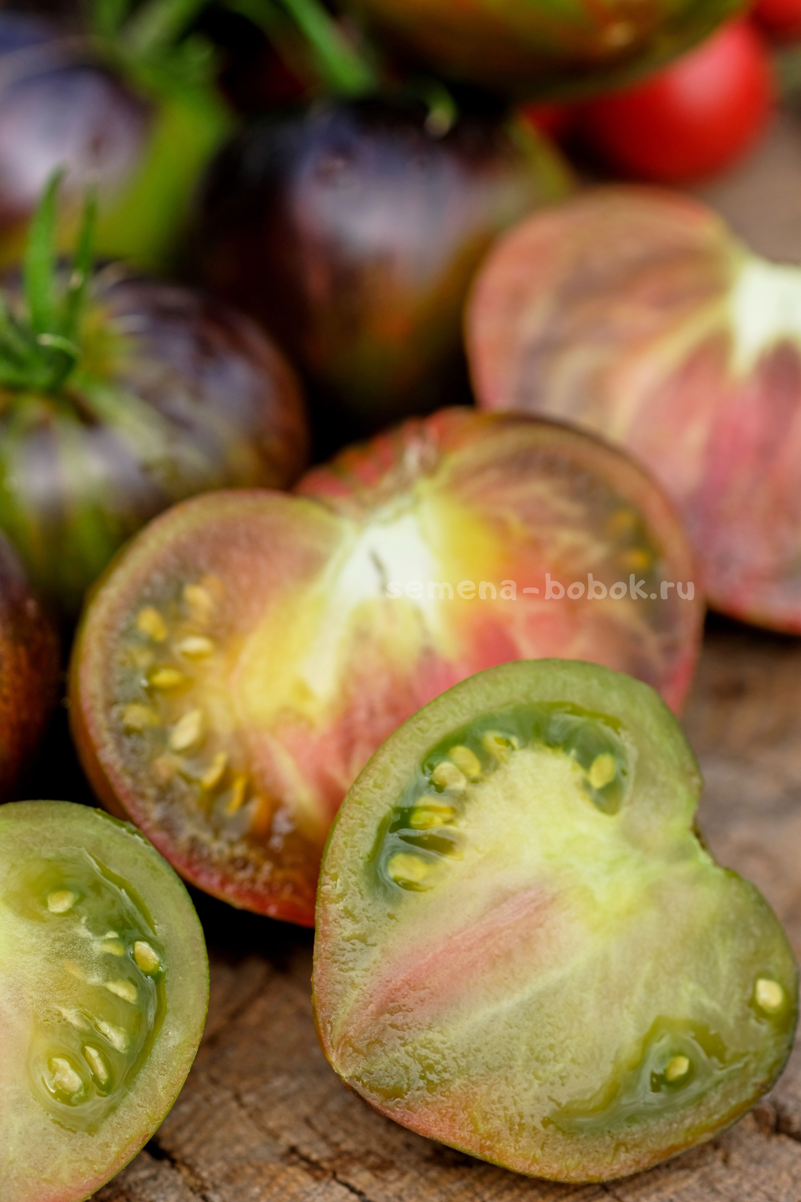 На разрезе мякоть также салатового цвета с оранжевыми язычками, чем спелее плод - тем больше оранжевого. Мякоть маслянистая, нежная, очень сладкая с легким фруктовым послевкусием. Урожайность очень хороша, в кисти по 7-8 плодов, примерно одного размера, весом 150-200 г.