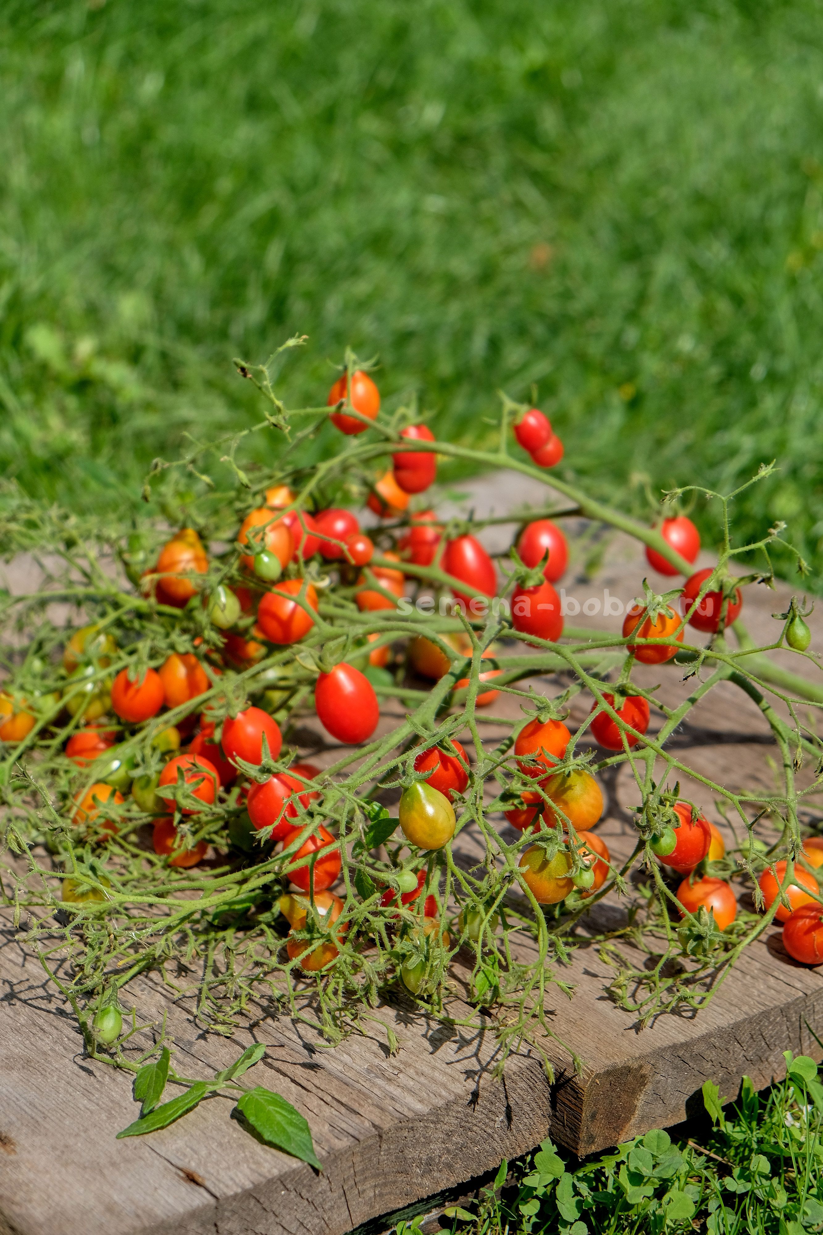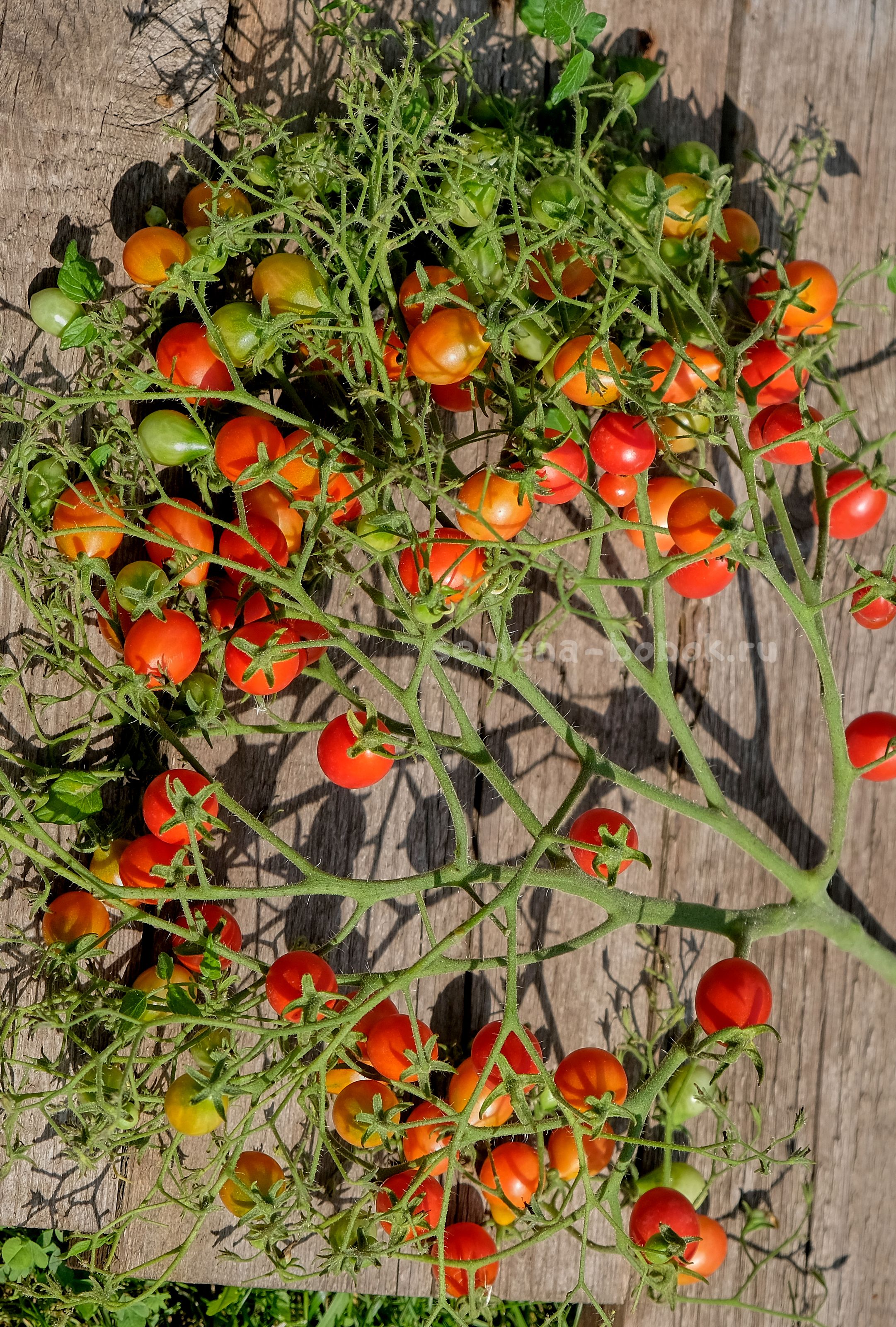Рос в открытом грунте, дорос до 1,5м, вела в один ствол. Формирует огромные кисти, по 50-100 плодов в каждой. Как и большинство мультикистевых сортов, одновременно вся кисть не зозревает. Чем чаще будете собирать спелые томаты, тем быстрее и больше и завяжется новых.