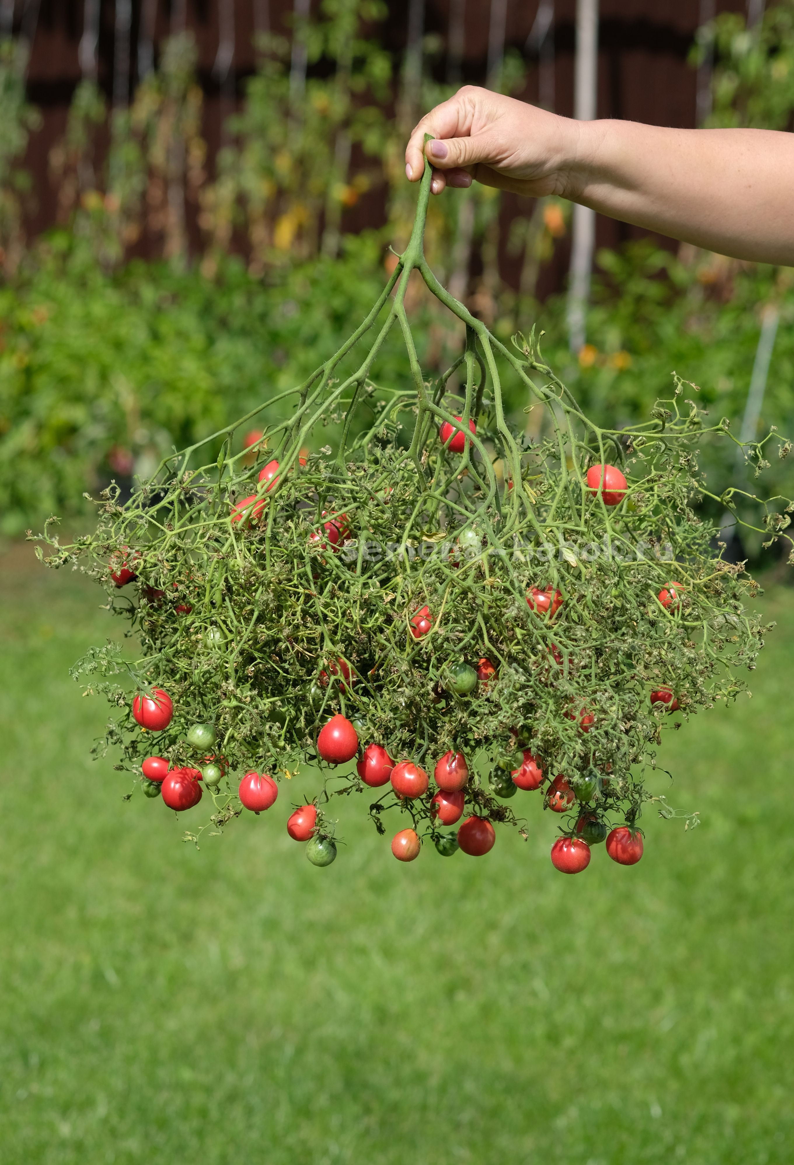 Куст не особо облиственный, прям редкая листва. Плоды - красные груши, весом около 20 грамм, сладкие. Такие томаты рекомендую вести только в один ствол. Уникальный сорт. Из всех мультикистевых - его кисти самые огромные!