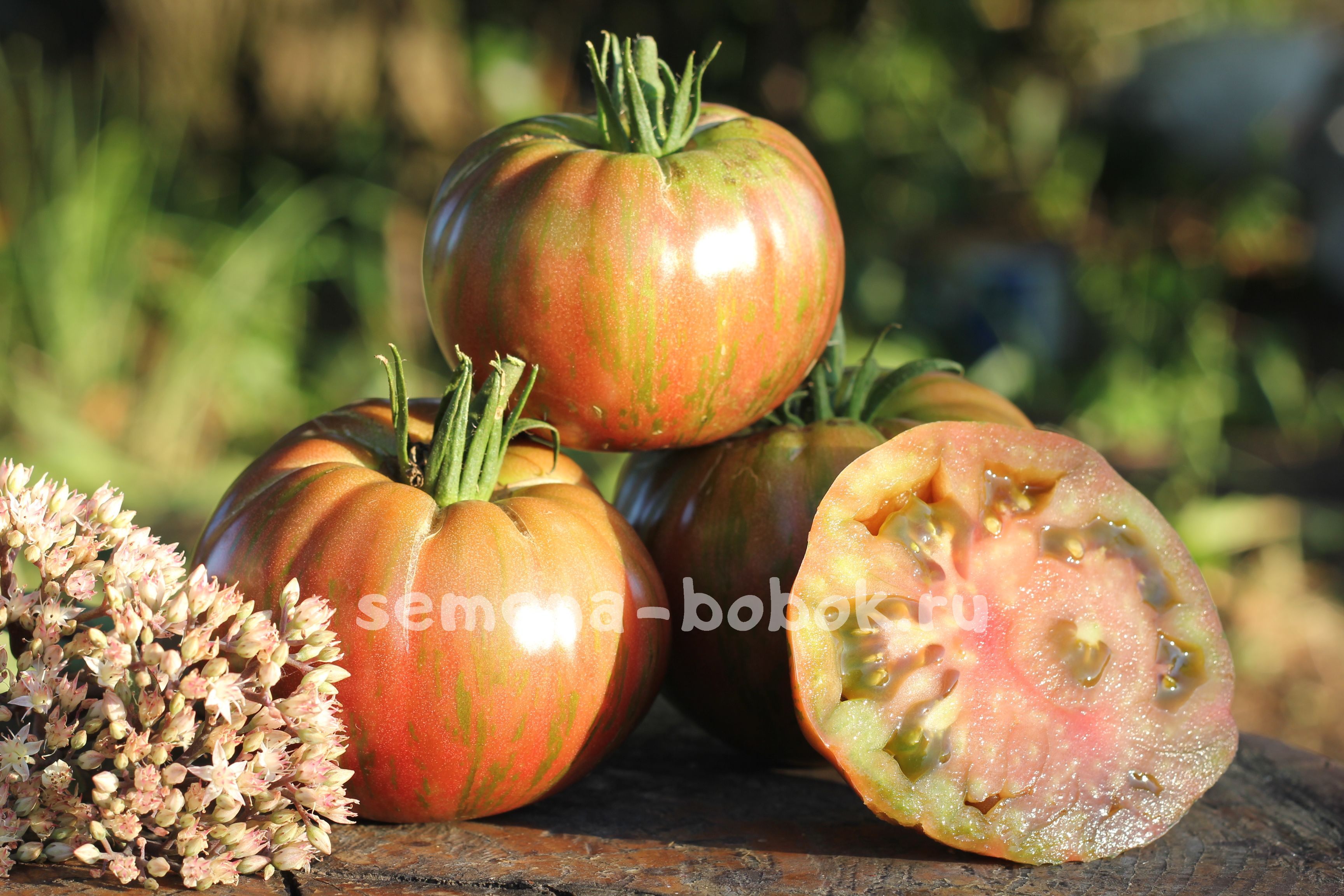 Спелые плоды насыщенного красного цвета с красно-зелено-серебристыми полосками. Вес плода 160-280 грамм, по форме ровные, плоскоокруглые, многокамерные. Мякоть плотная, насыщенная. Этому сорту свойственна хорошая лежкость и транспортировка.