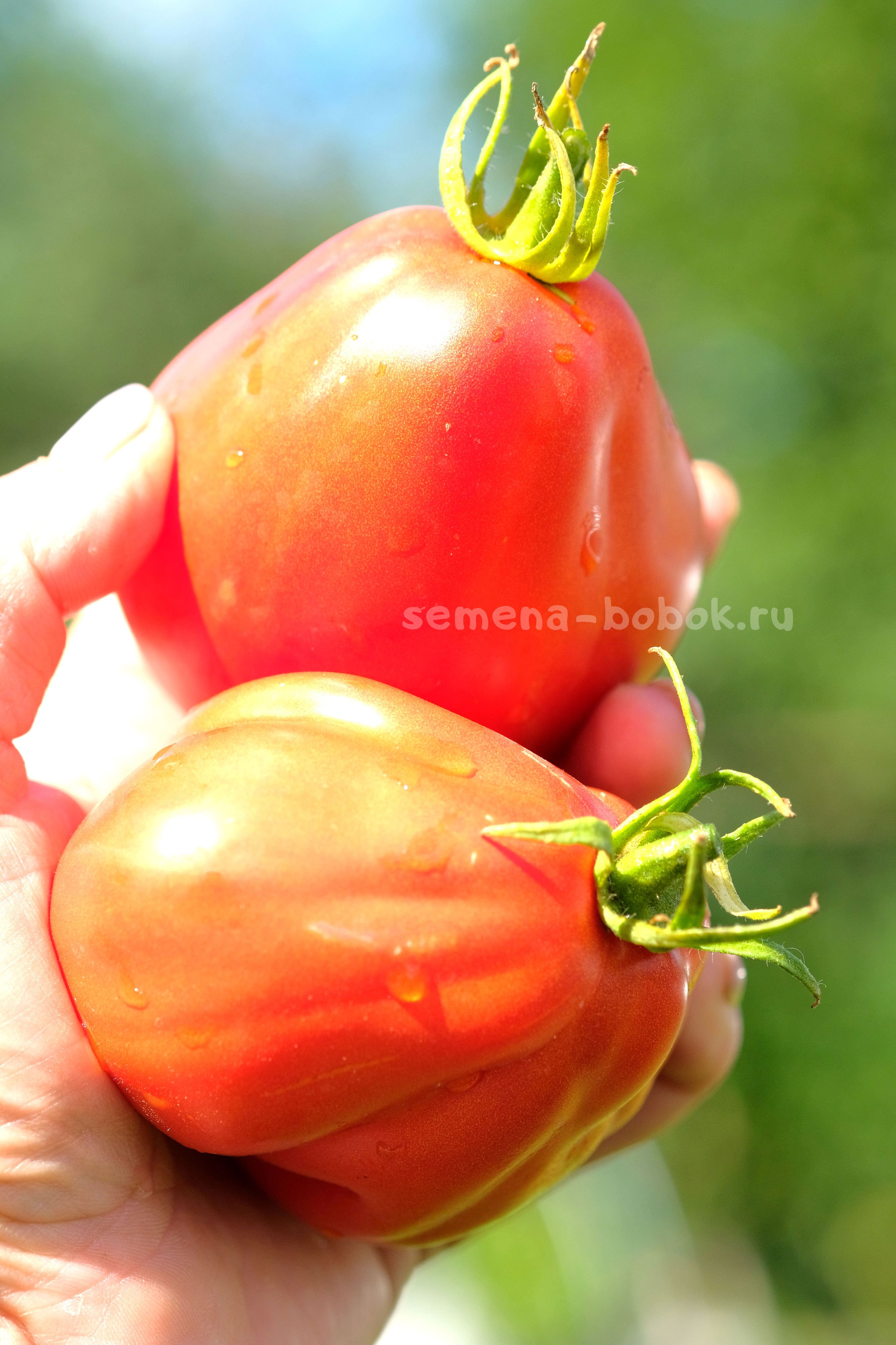 Очень урожайный сорт, плоды красные груши, присборенные у плодоножки, с малиновой мякотью. Плотные, с сбалансированным вкусом. Вес плодов 200-300 г. Куст индетерминантный, крепкий, стройный. Вяжет хорошо, обильно, кисти требуют подвязки.