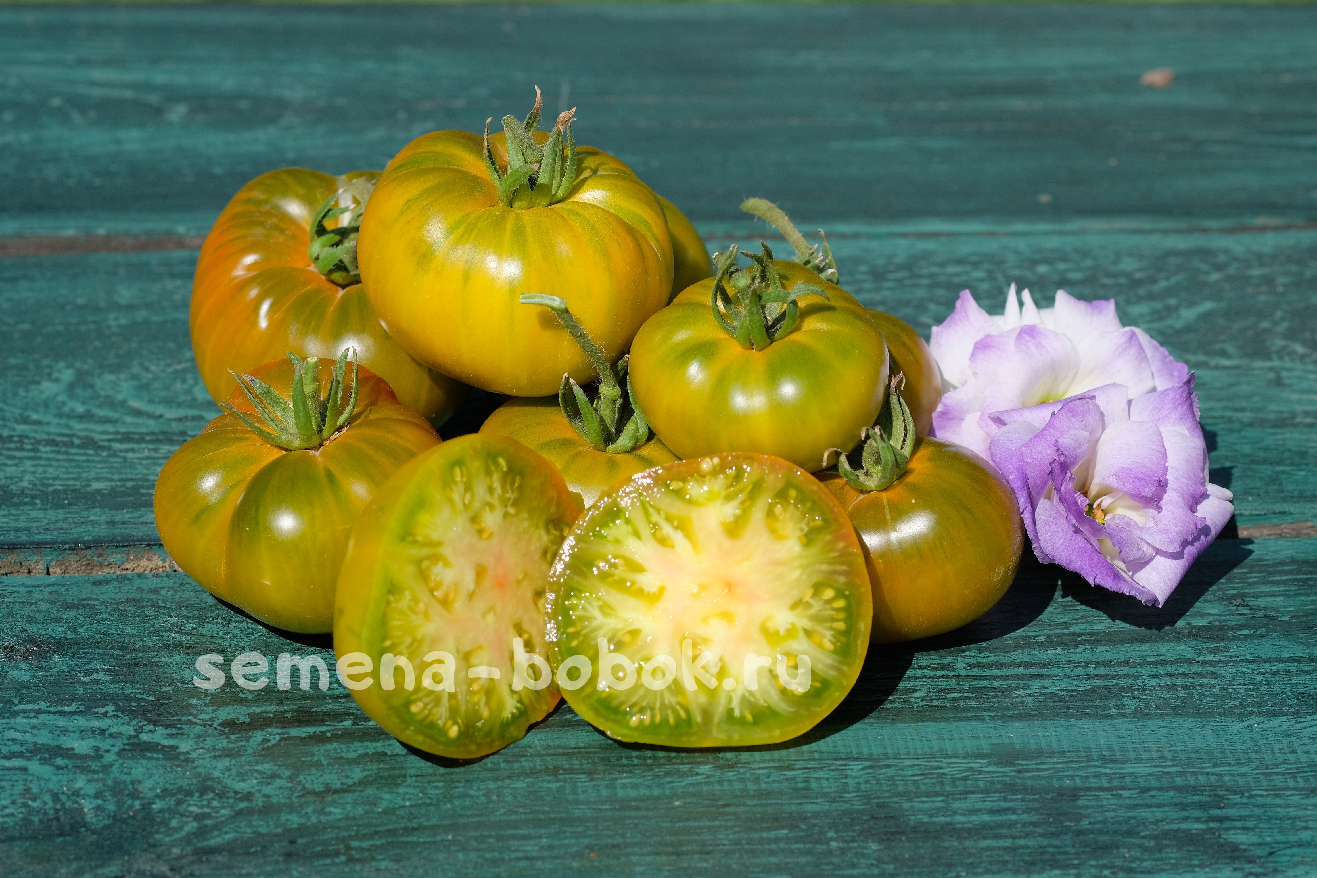 Сорт выведен российскими селлекционерами из Новосибирска (Сибирский Сад) в 2006 году. Сорт холодостоек и устойчив к различным погодным аномалиям. Настоящий сибиряк! Куст довольно компактный, лситва не крупная, междоузлия короткие. Вяжет полноценные кисти практически без пустоцветов. Плоды плоскоокруглой формы, весом 200-400 г. В технической спелости помидоры приобретают "малахитовую" окраску, в биологической - становятся желтоватыми и почти прозрачными. Мякоть изумрудного цвета, сахаристая, нежная с ароматом дыни и киви. Вкус потрясающий! Этот томат в нашей коллекции выращивается каждый год, один из любимых сортов.