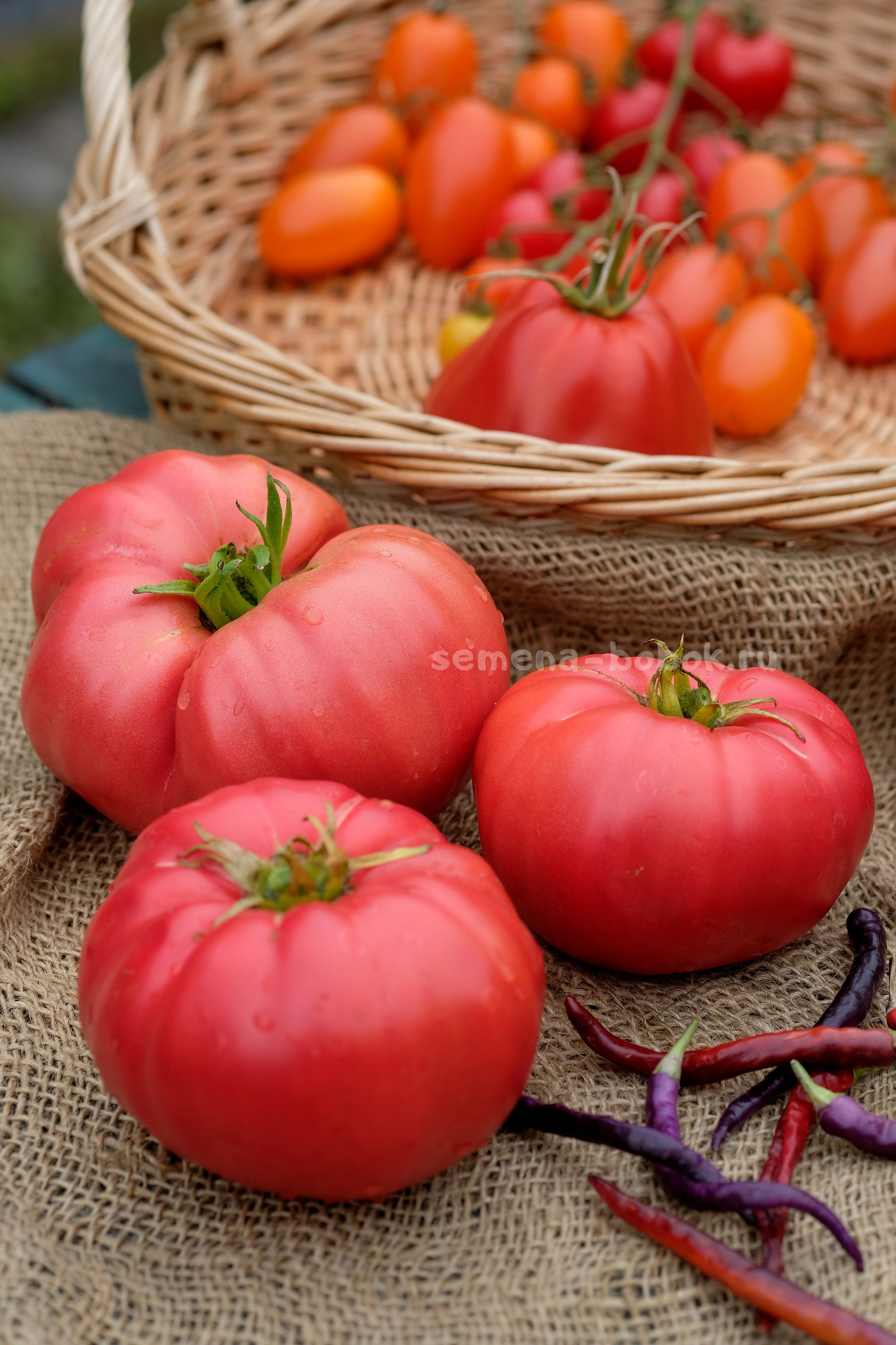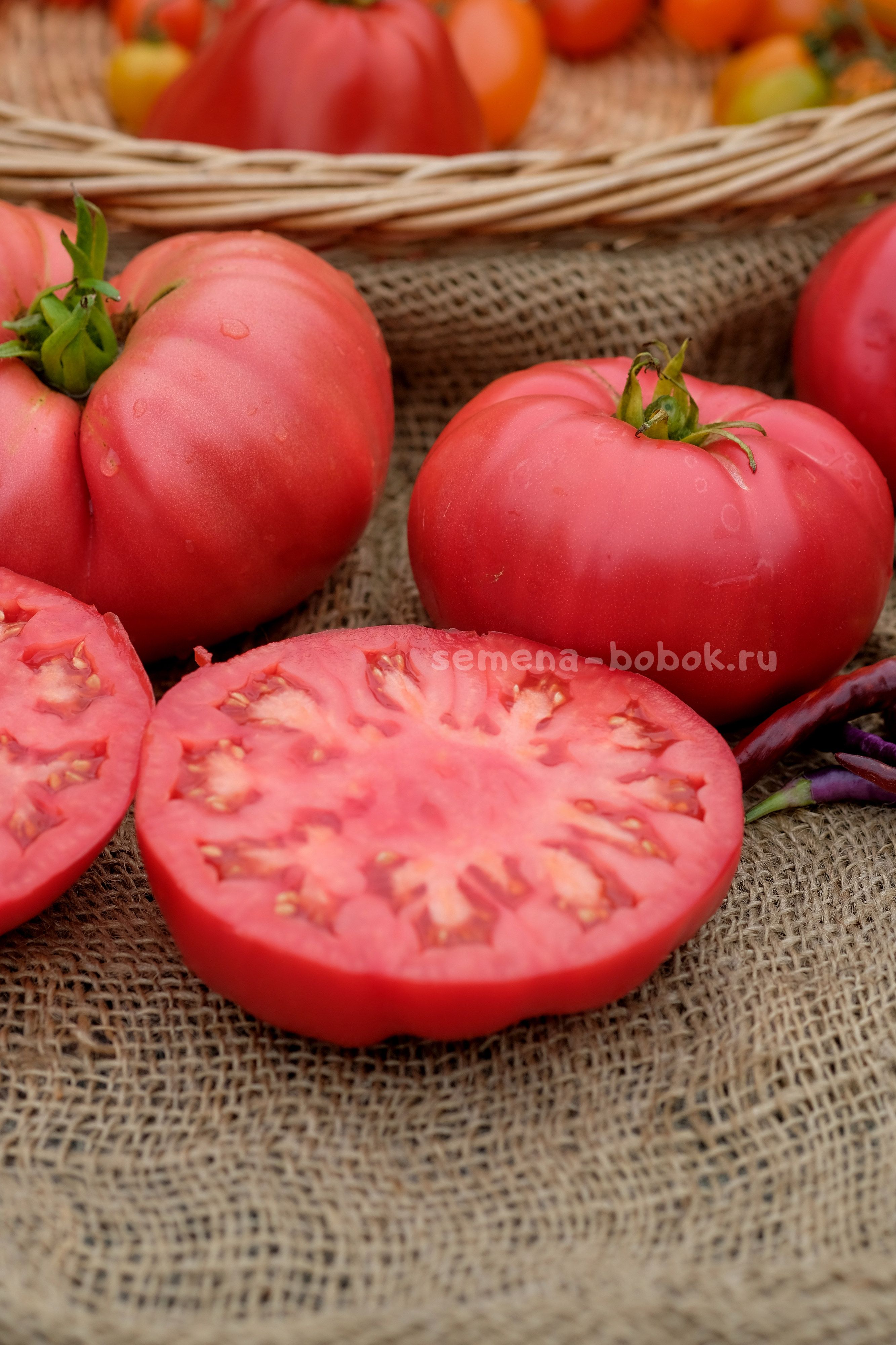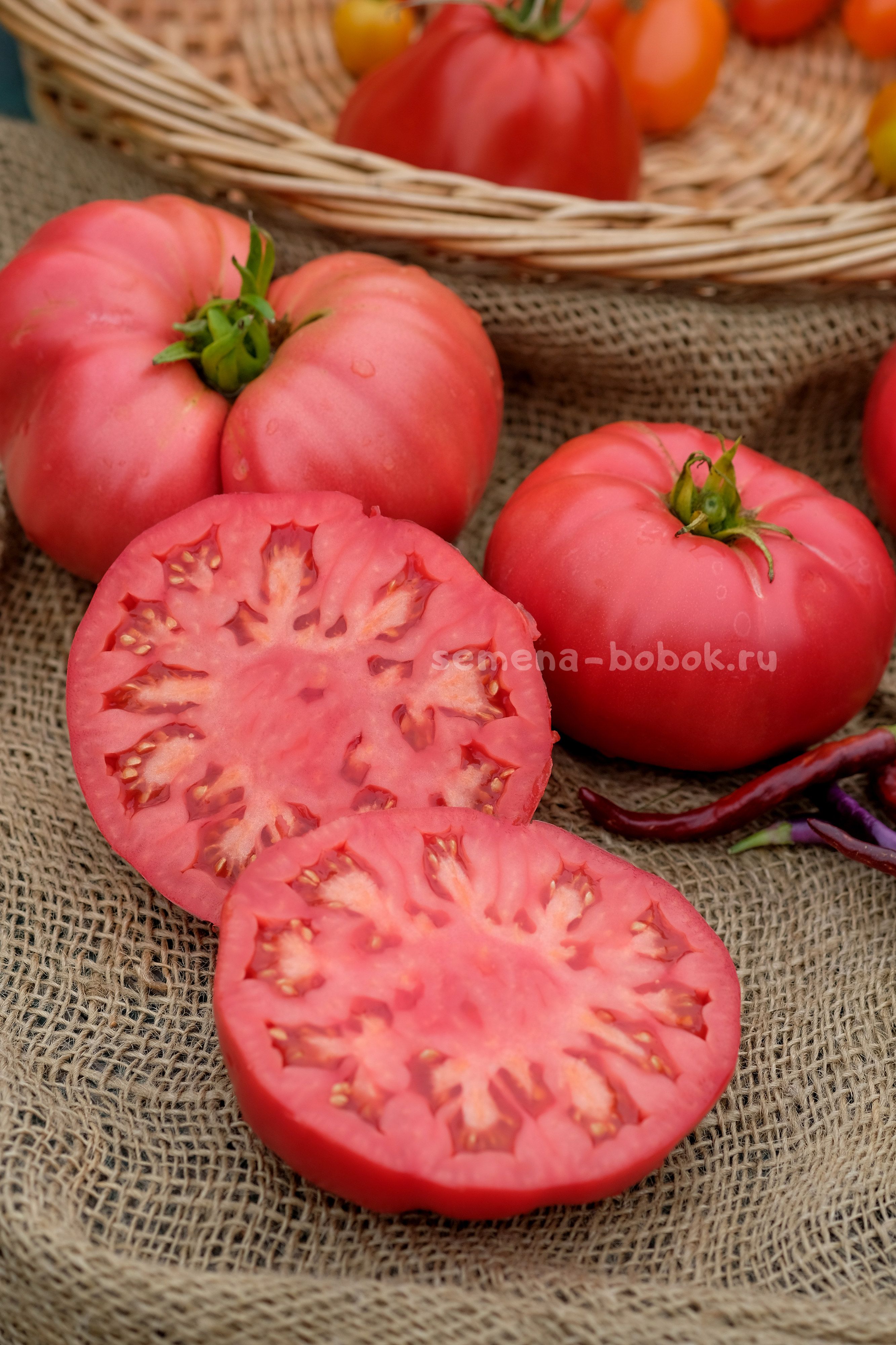 Цвет плодовРозовыеРазмер плодовКрупноплодныеТип кустаИндетерминантныйСрок созреванияСреднеспелыйНазначение сортаДля соков и соусовПроисхождение (селекция)Минусинские томатыГод выращивания2025 -