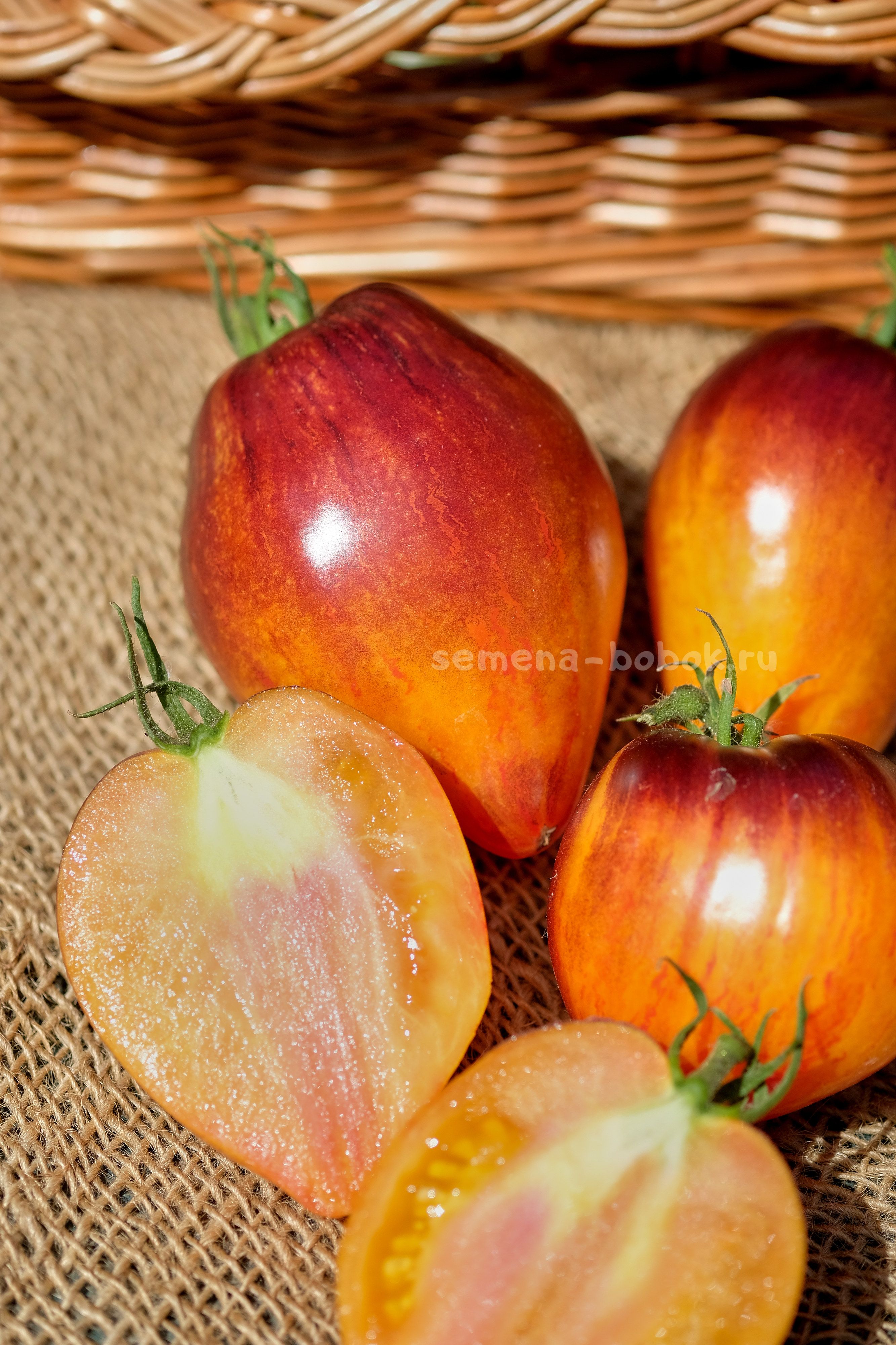 Плоды - аккуратные удлиненные сердца желтого цвета с антоциановым напылением. Мякоть внутри желтая с красными всполохами, очень сладкая, сочная. У меня оба куста показали очень хорошую урожайность в открытом грунте, кисти обильные, томаты в кисти все ровные, весом 150-250 г.
