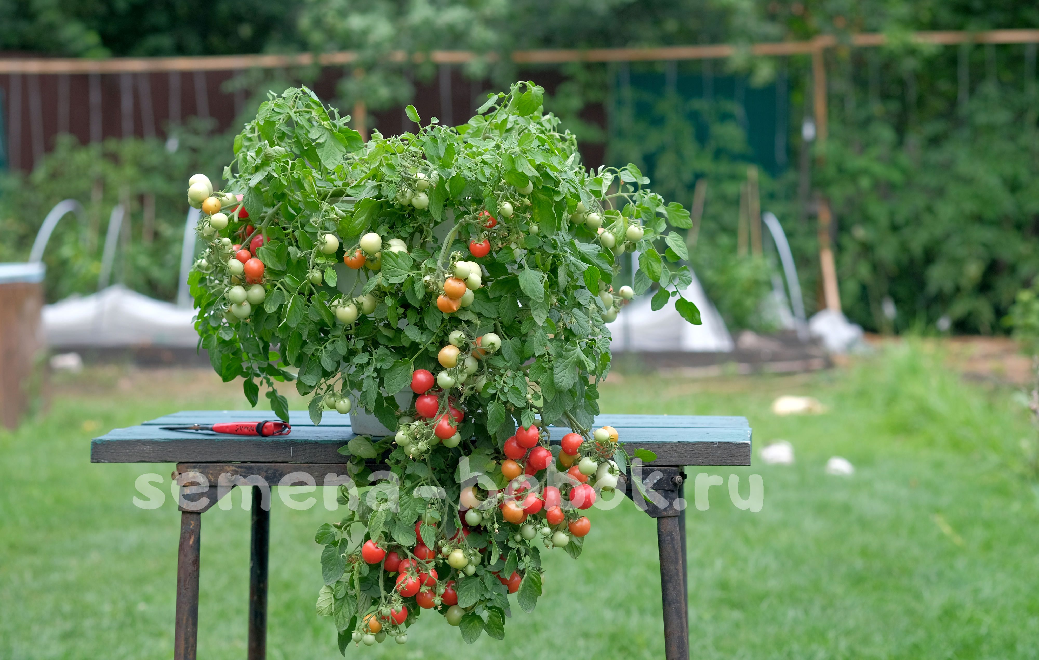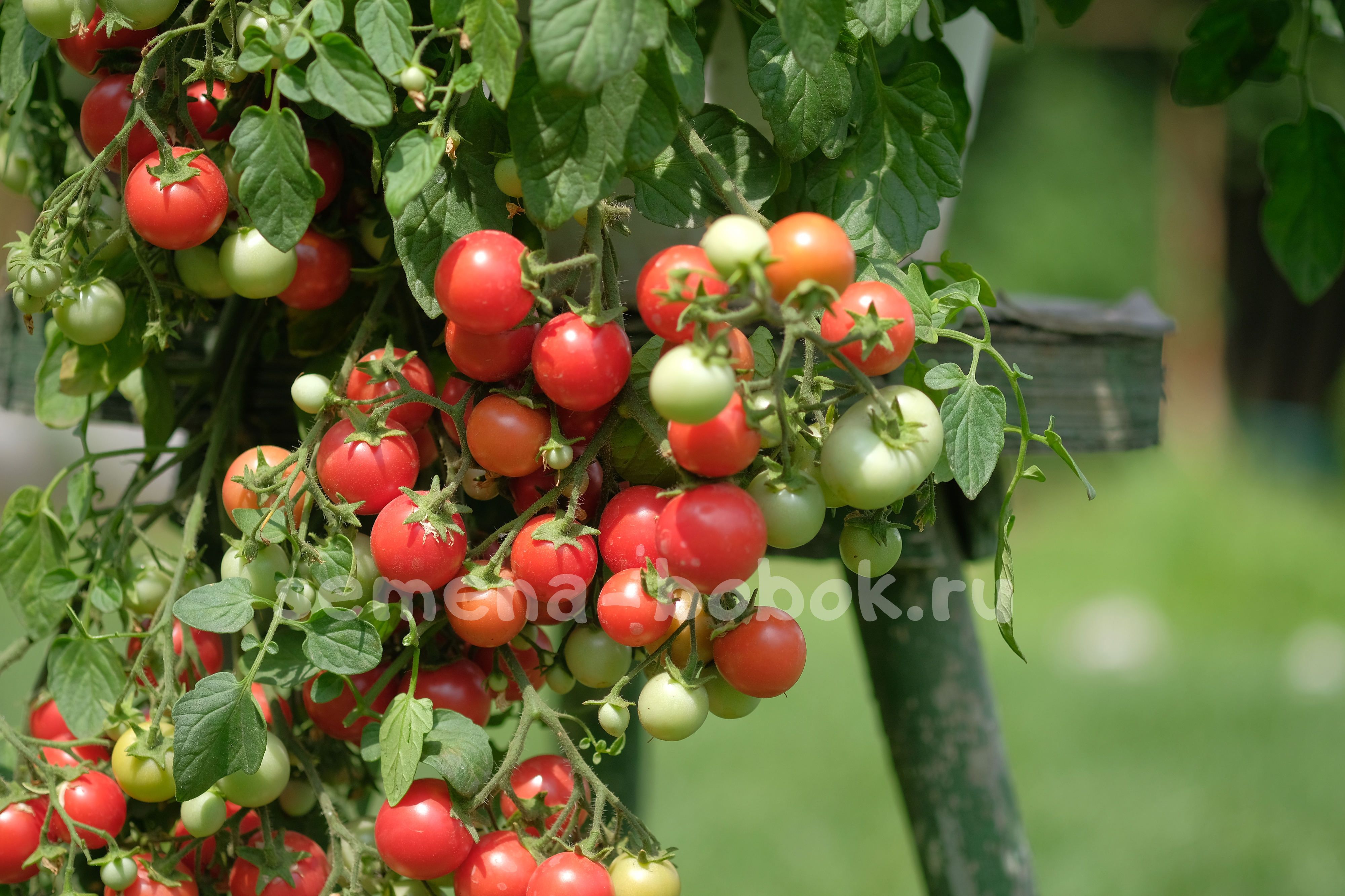 Один из самых красивых ампельных томатов в моей коллекции! Действительно жемчужина сада. Настоящий ампельный томат. Плети длинной 40-80 см, сплошь увешаны гроздьями томатов.