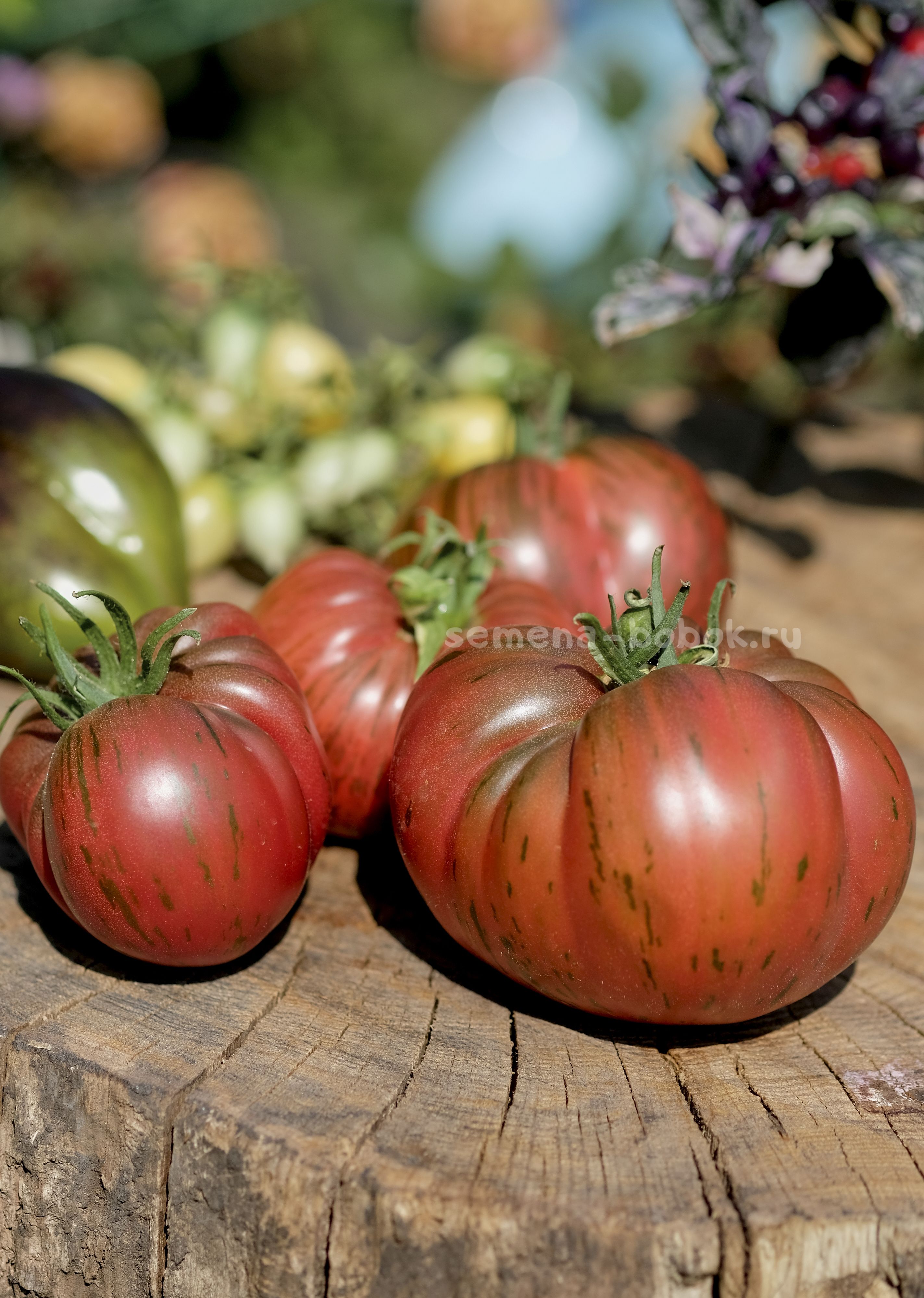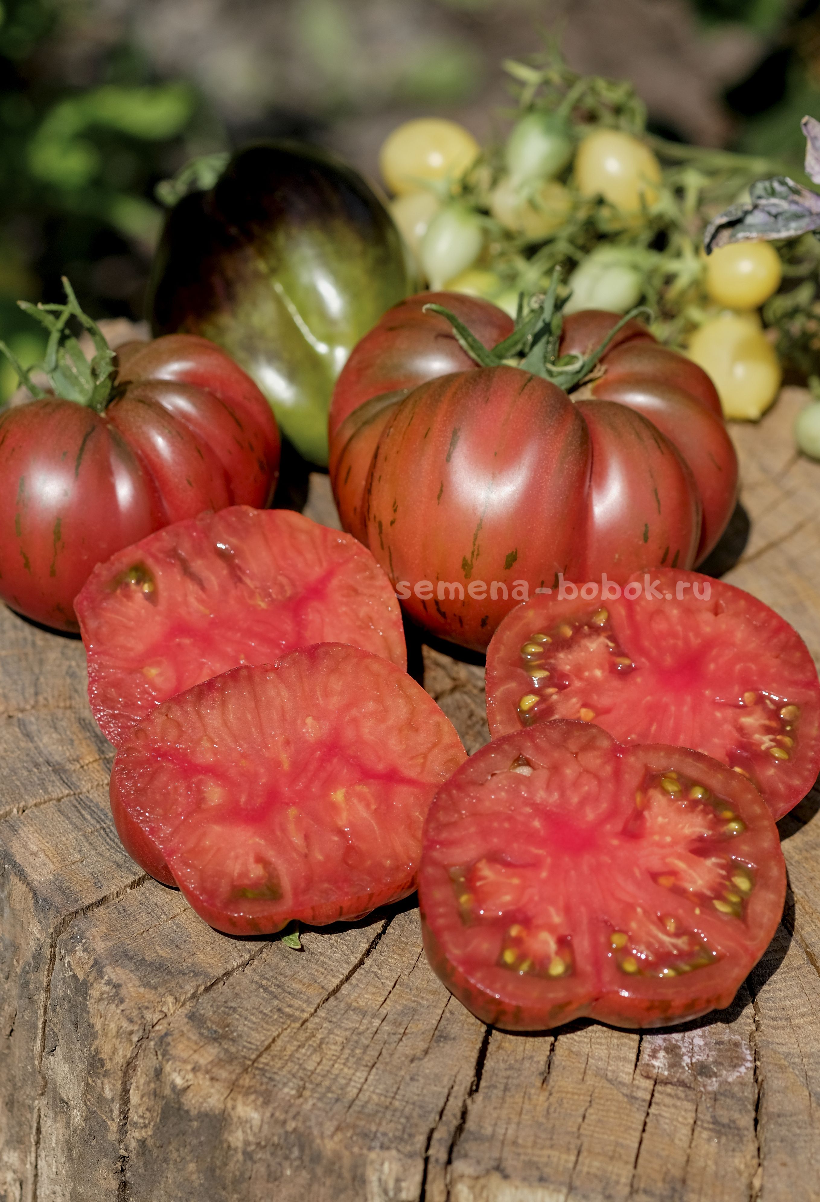 Плоды - крупные сердца, шоколадного цвета с зелеными штрихами. Вес плодов 300-500 г.