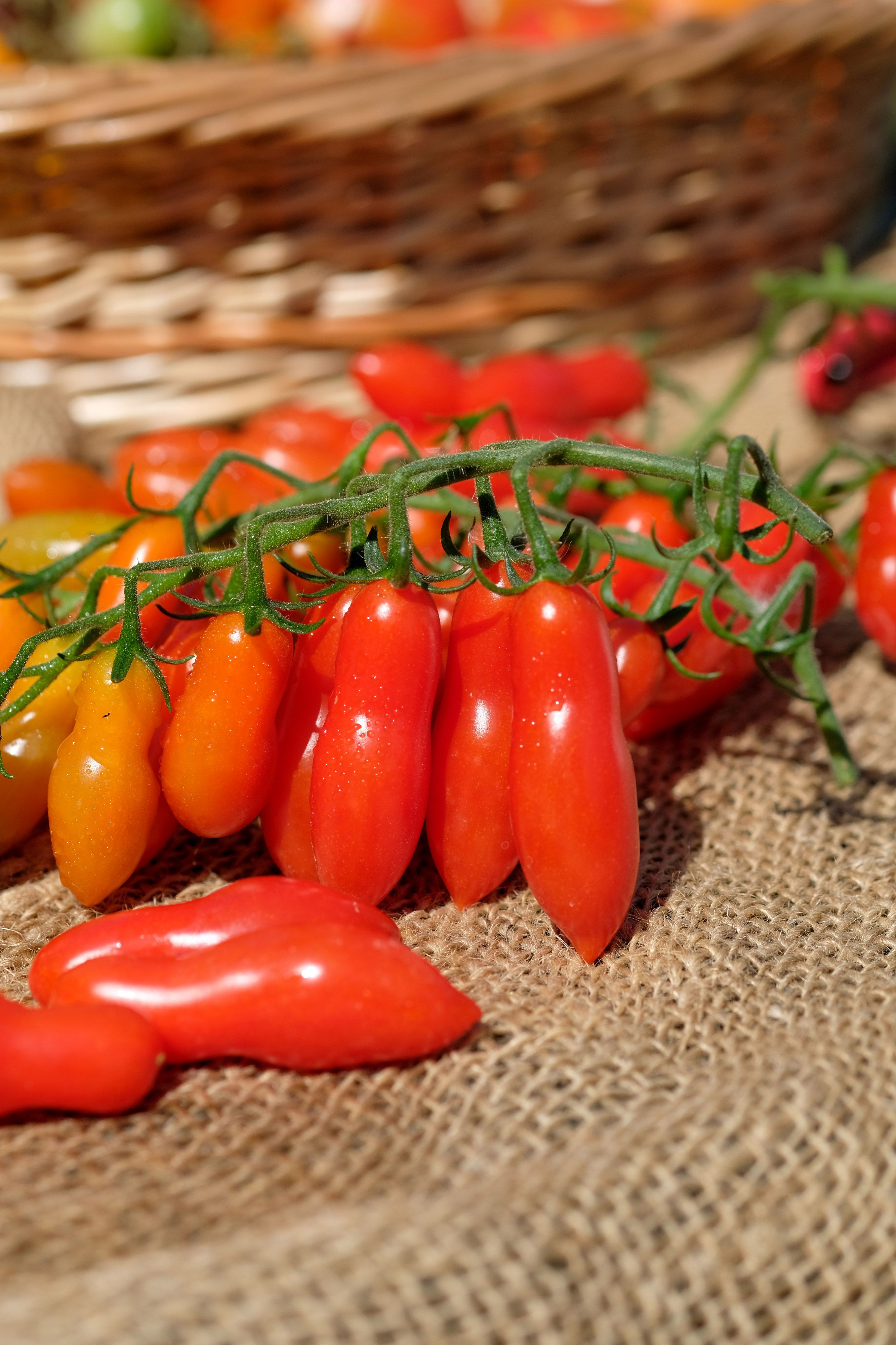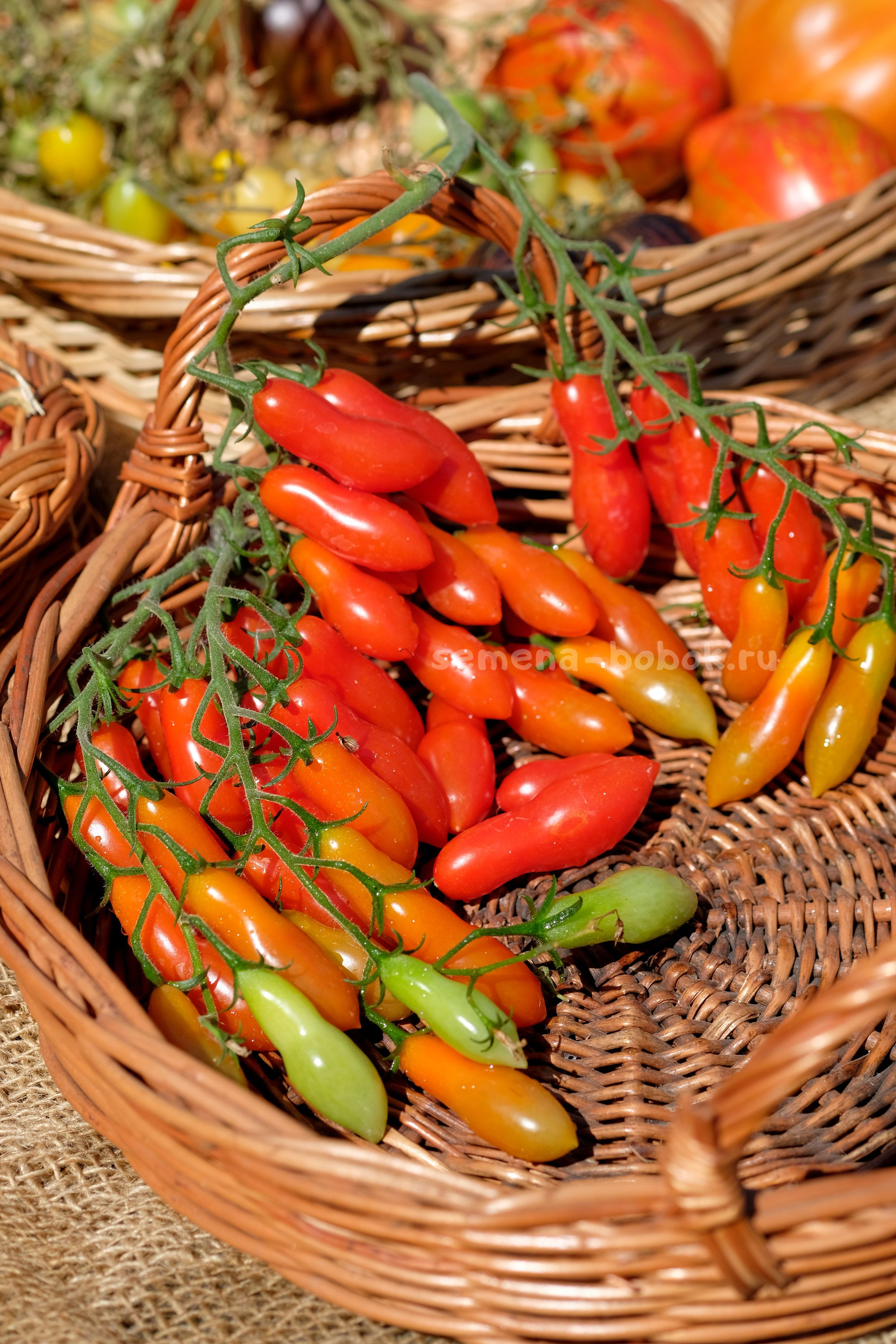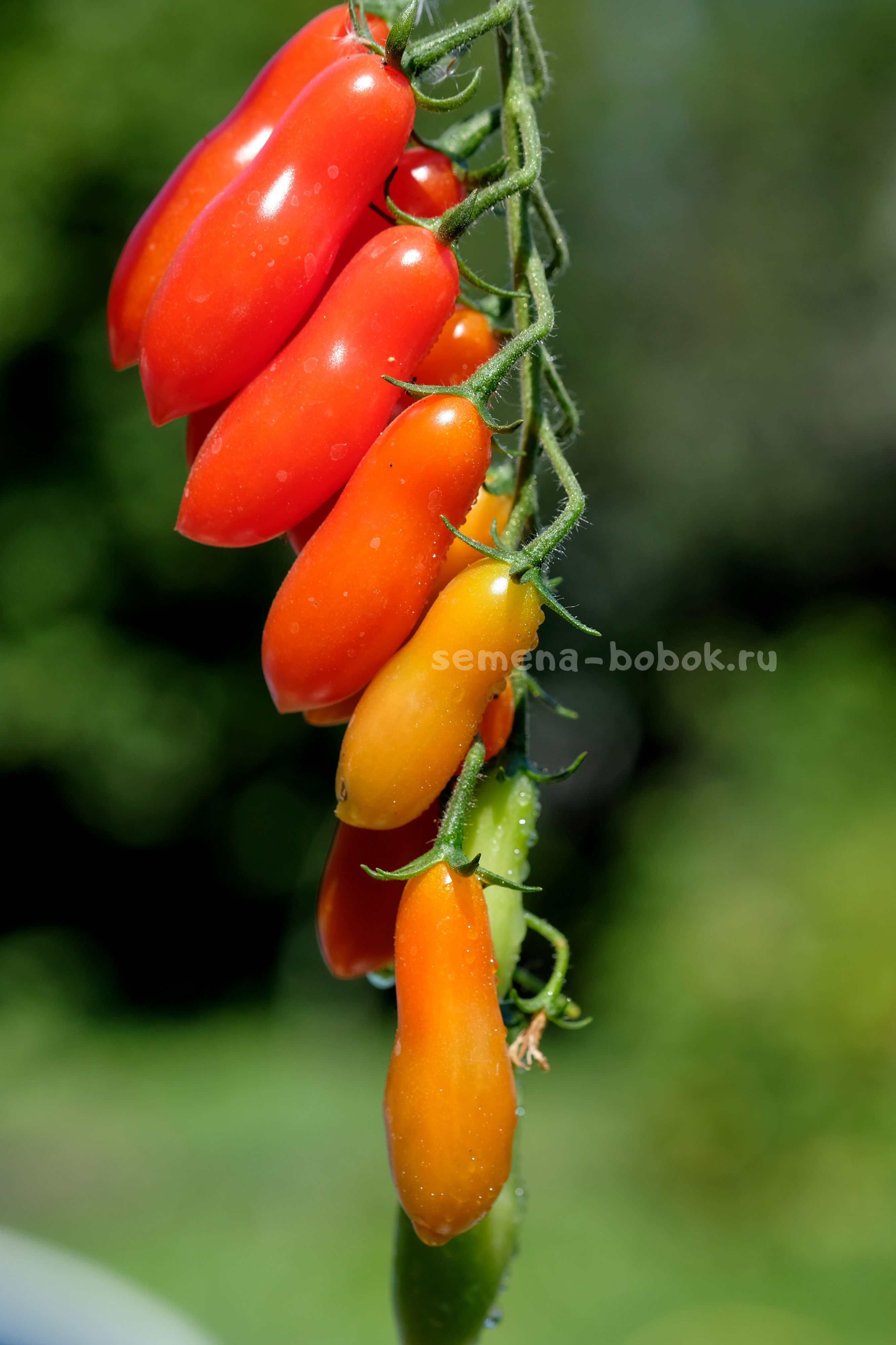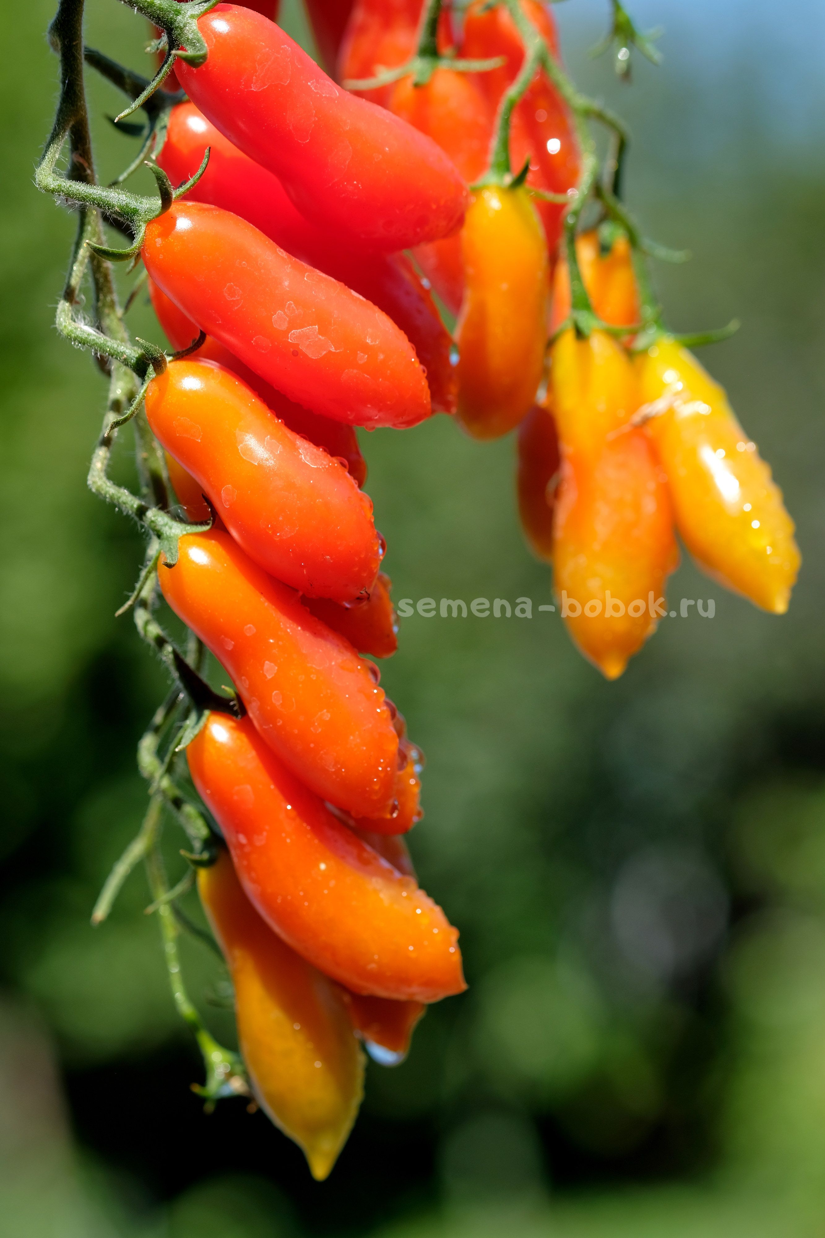 Томат черри с простыми и сложными кистями. Плоды удлиненной формы, весом около 15 грамм. Очень сладкие! Стенка толстая и хрустящая, по консистенции очень похож на Танцующие Зеленые Пальчики - такой же вкусный, хрустящий, только красный. Семян в нем также практически нет.