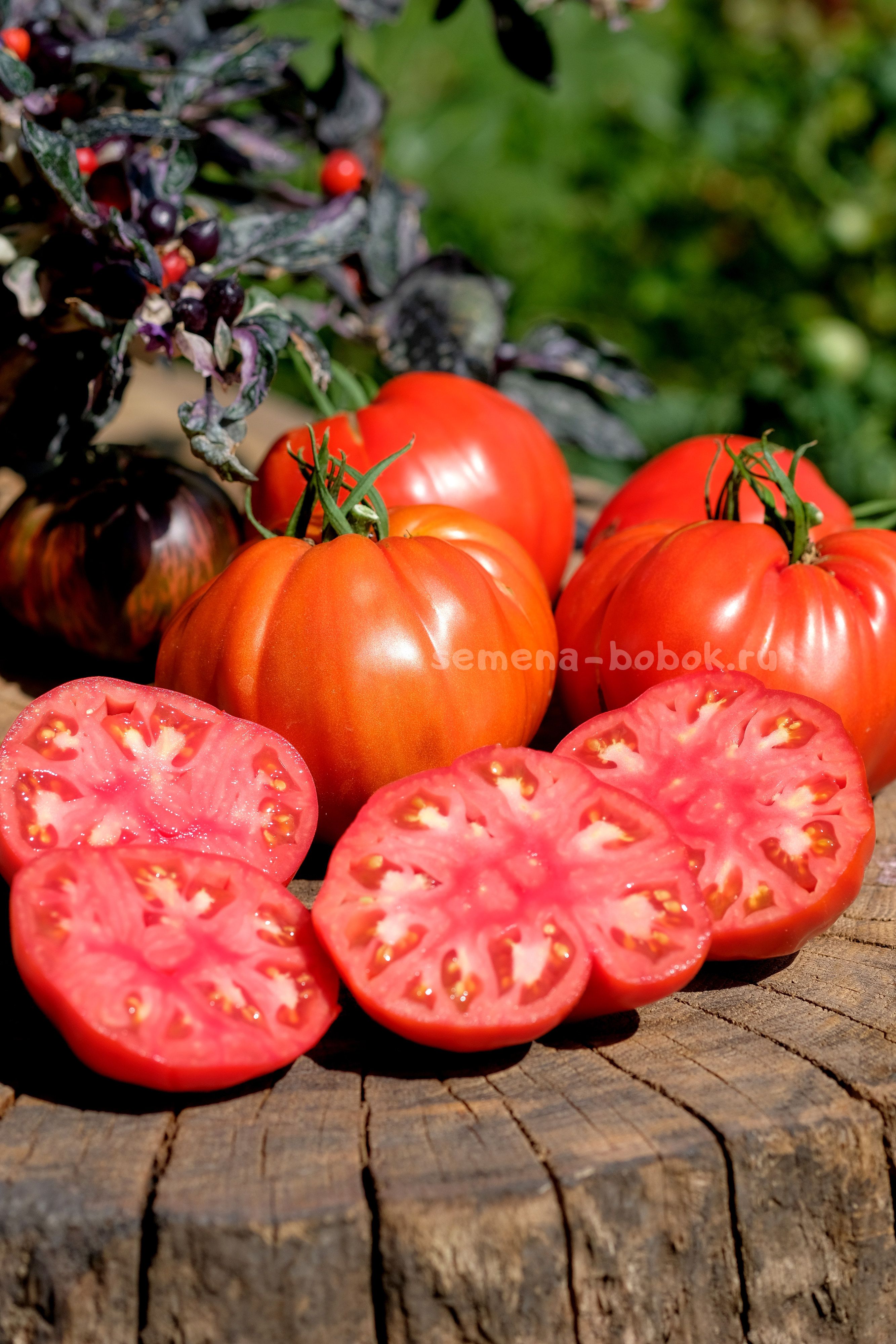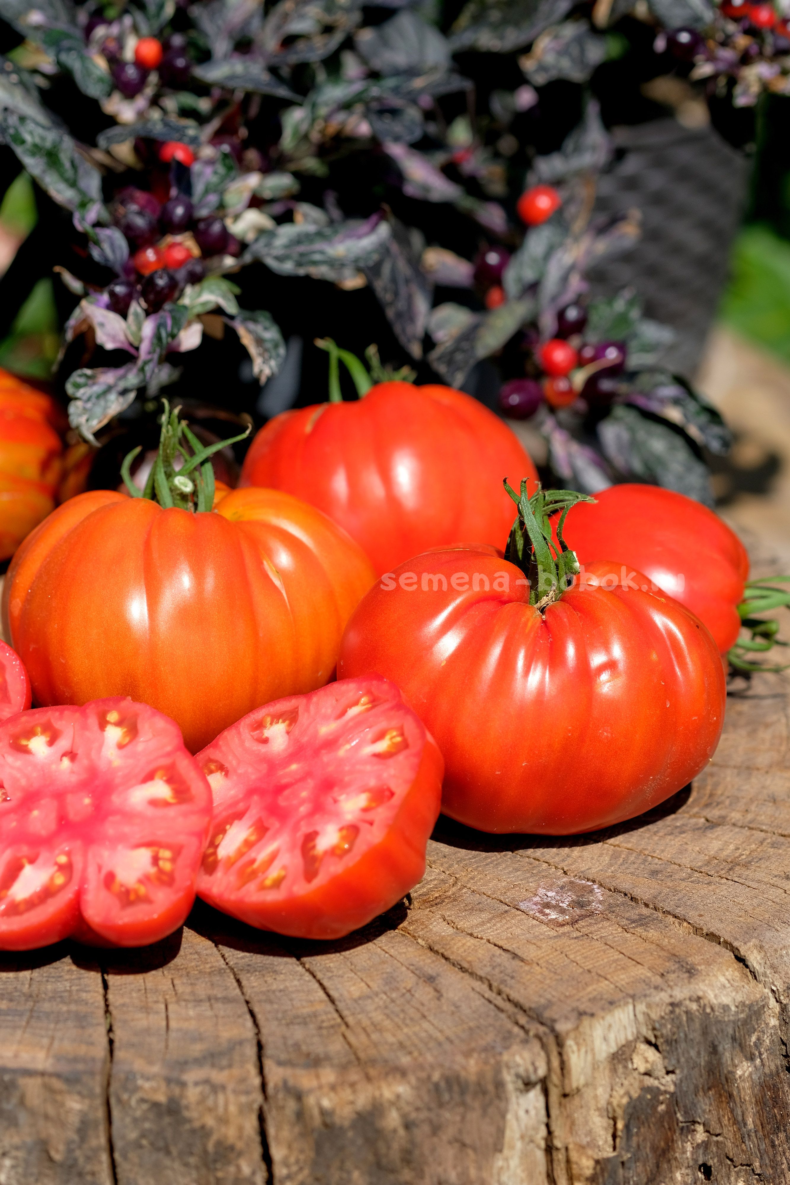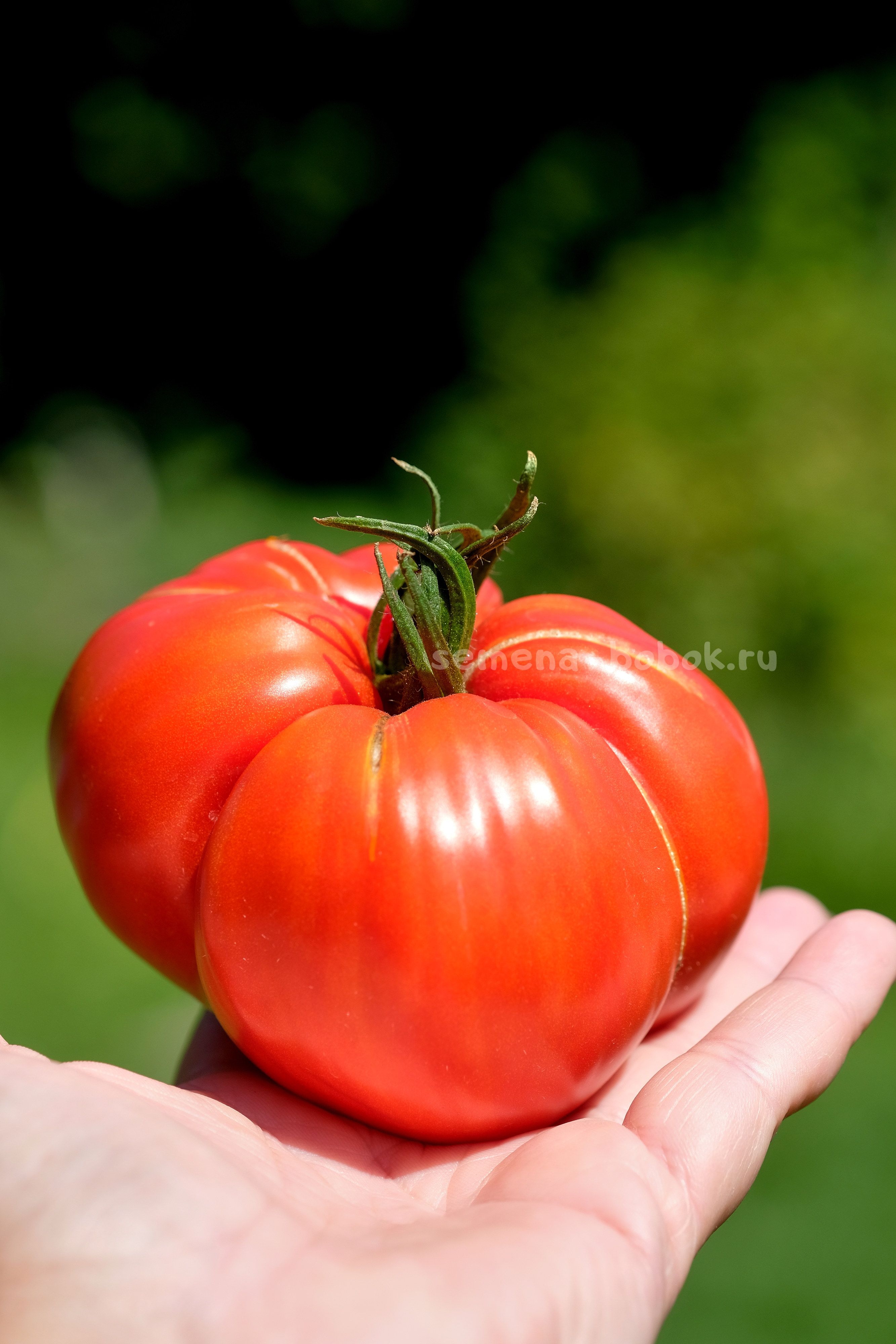 Индетерминантный сорт из Италии. По традиции, итальяенцев выращиваю в теплице. Куст мощный, выше 2 м, вела в два ствола. Плоды плоскоокруглые, с небольшими складочками, красные, весом 500-600 г. Вкус классический, помидорный. Хороший сорт для переработки на соусы и пасты.