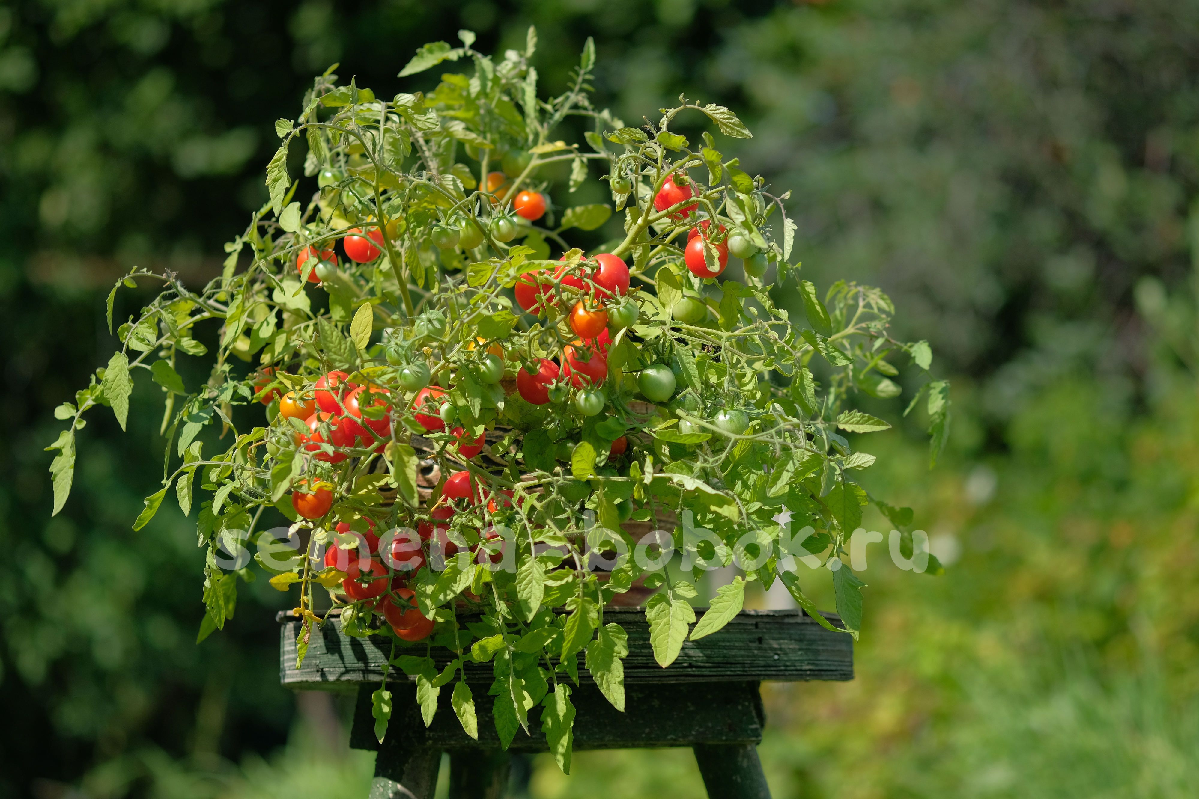 У меня росло два куста - один в ообъеме 7,5 литров - его плети были длиной 35-50 см, второй в 4 литрах - там был куст более компактный, этакое томатное облако. В бОльшем объеме урожайность была выше. Рекомендую кашпо от 5 литров и выше. Плоды можно использовать для консервации, но лучше кушать свежими, щипать прямо с куста.